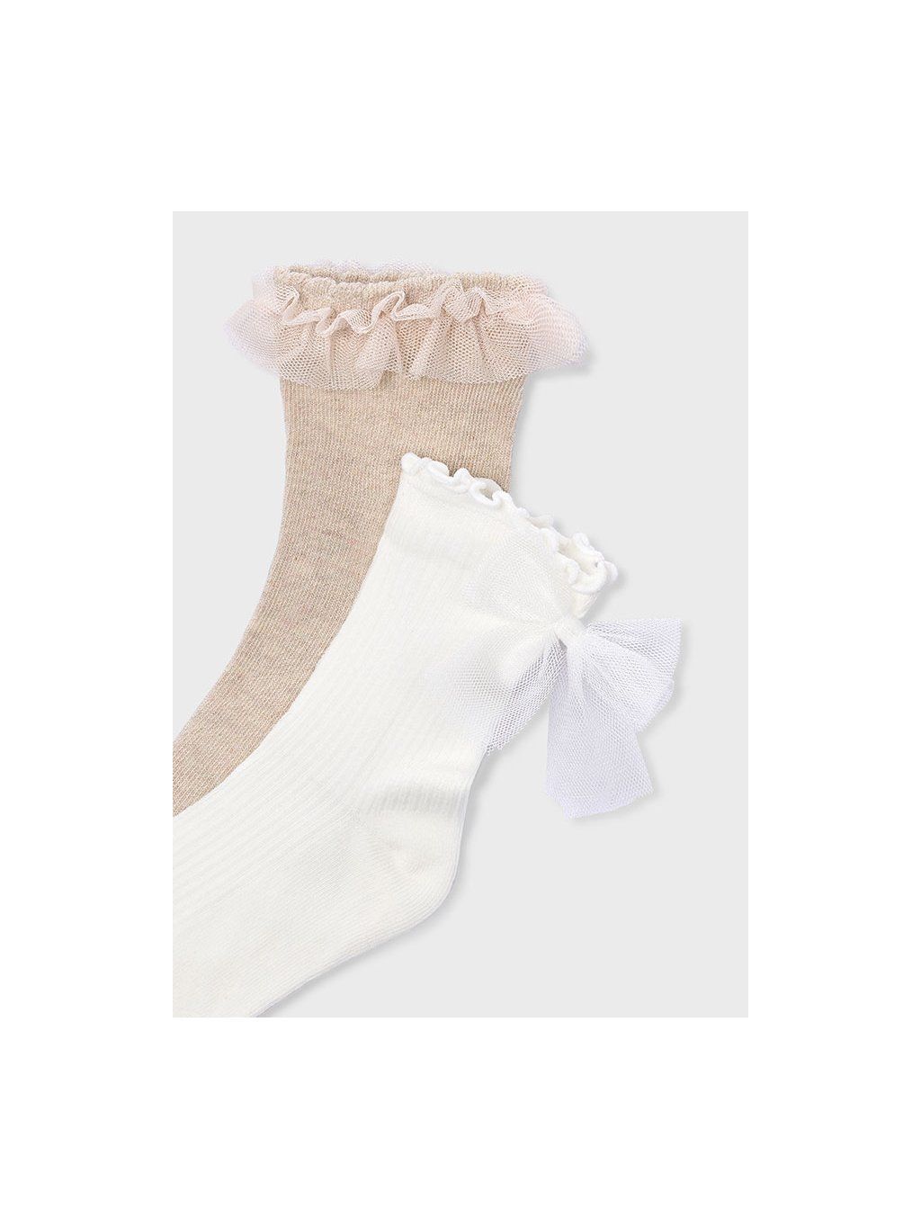 Mayoral set 2 párů dívčích ponožek. Ponožky mají na sobě aplikaci tylu. Ponožky můžete kombinovat s dalšími kousky z kolekce.
