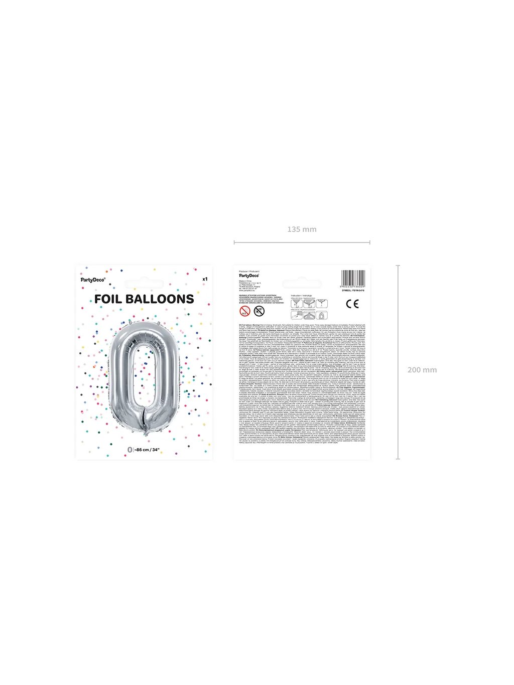Balónek fóliový čísla 0-9 stříbrný 100cm Party Deco