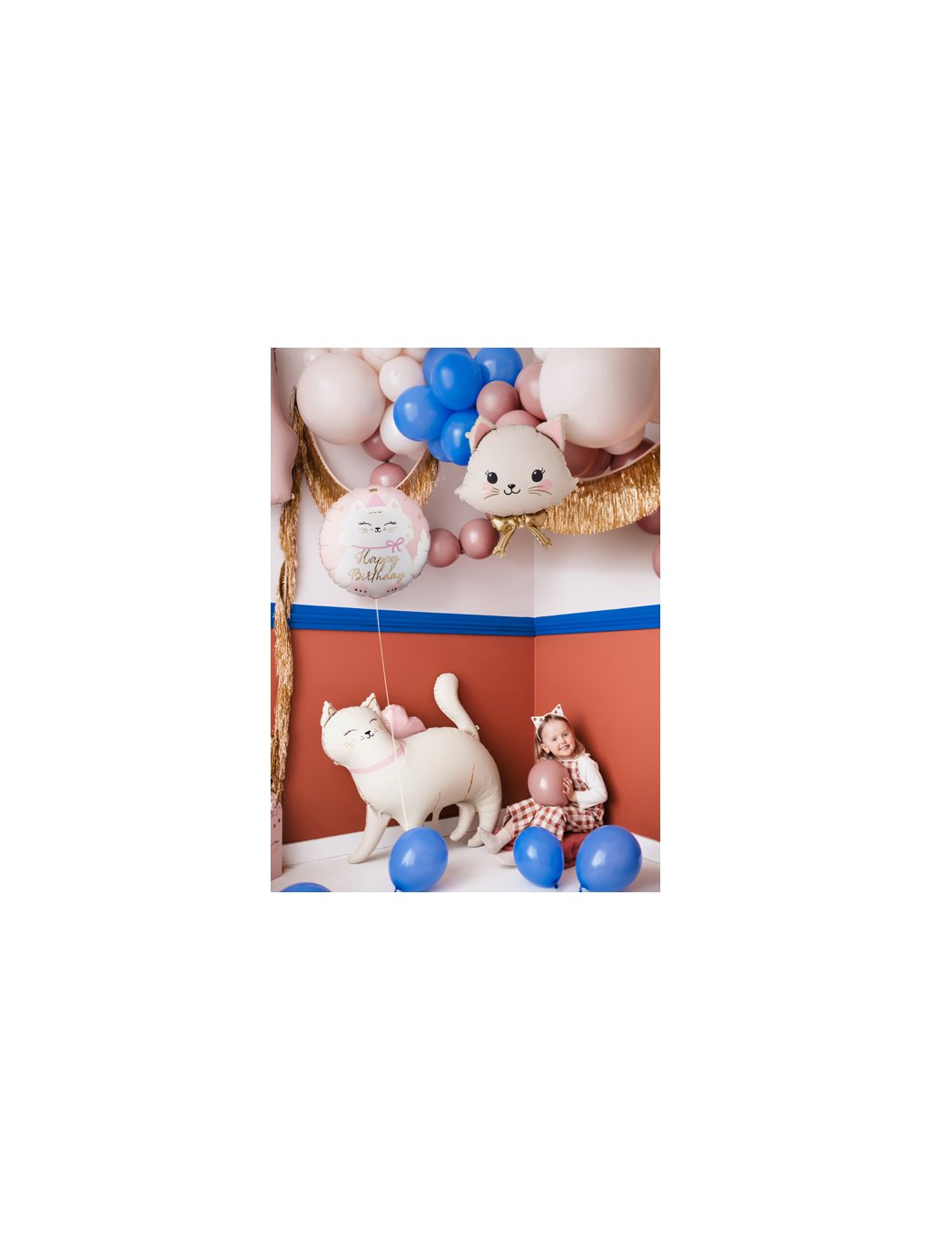Fóliový balónek bílé kočičky s mašlí. Rozměry před nafouknutím cca 60,5 x 71,5 cm (23,8 x 28,1"), rozměry po nafouknutí cca 50 x 60 cm (19,7 x 23,6").Nafouknout lze vzduchem nebo heliem. Brčko pro nafouknutí je součástí.