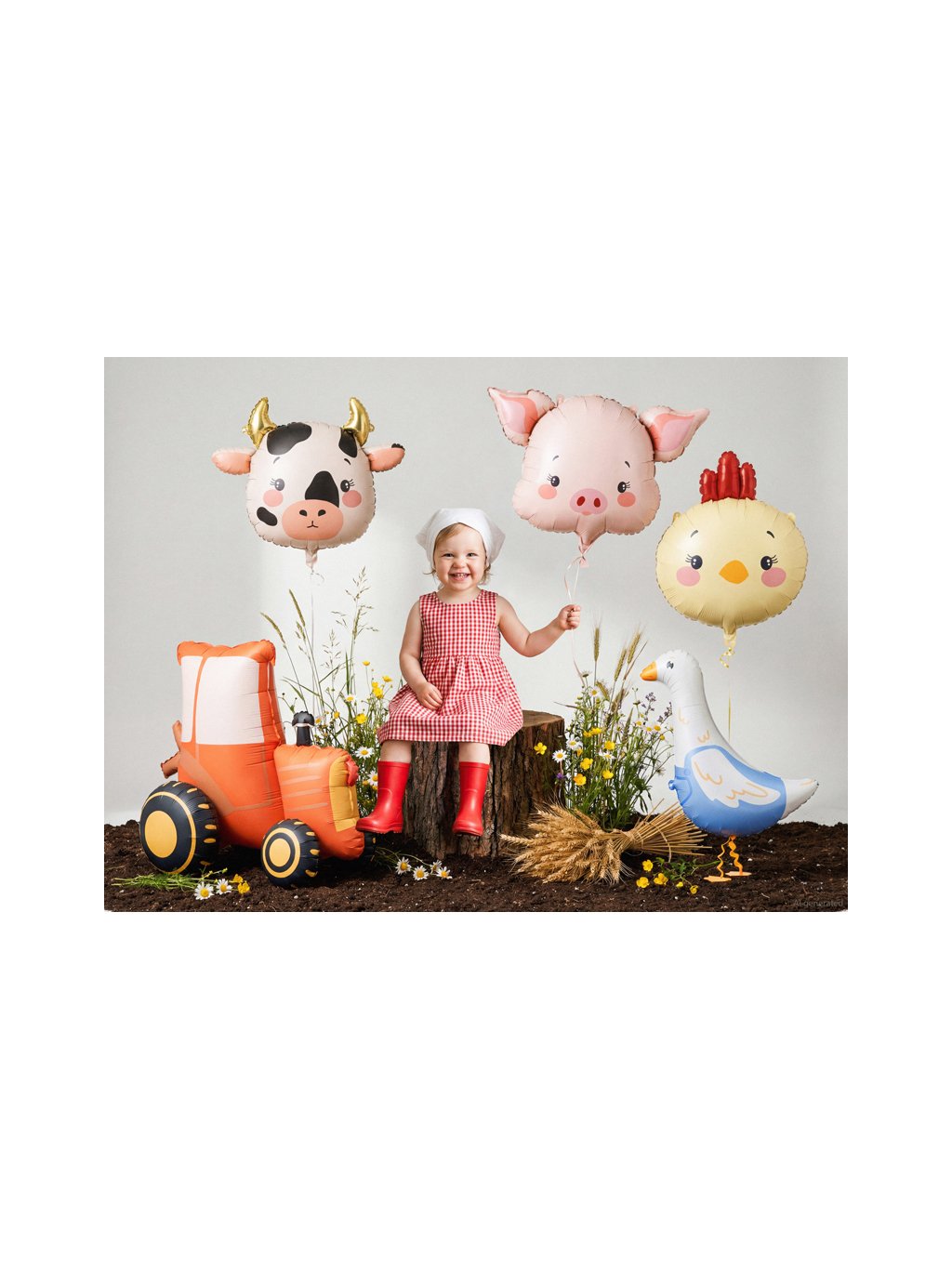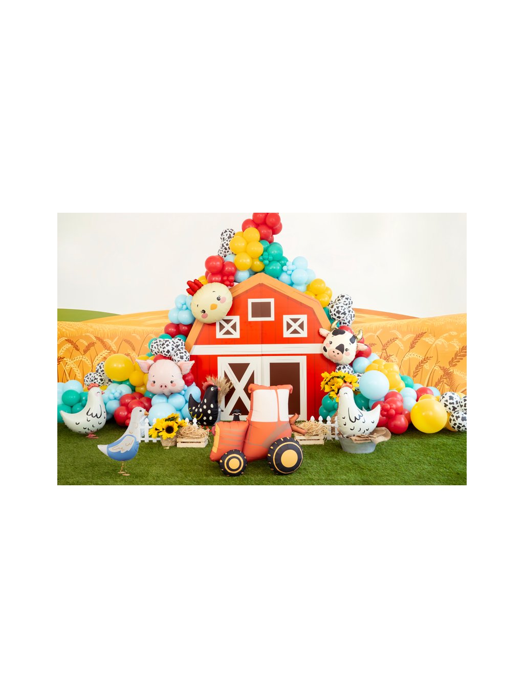 Fóliový balónek hlavy kuřátka. Rozměry před nafouknutím cca 62,5 x 73,5 cm (24,6 x 28,9 palce), rozměry po nafouknutí cca 51 x 59 cm (20,1 x 23,2 palce).Nafouknout lze vzduchem nebo heliem. Brčko pro nafouknutí je součástí.