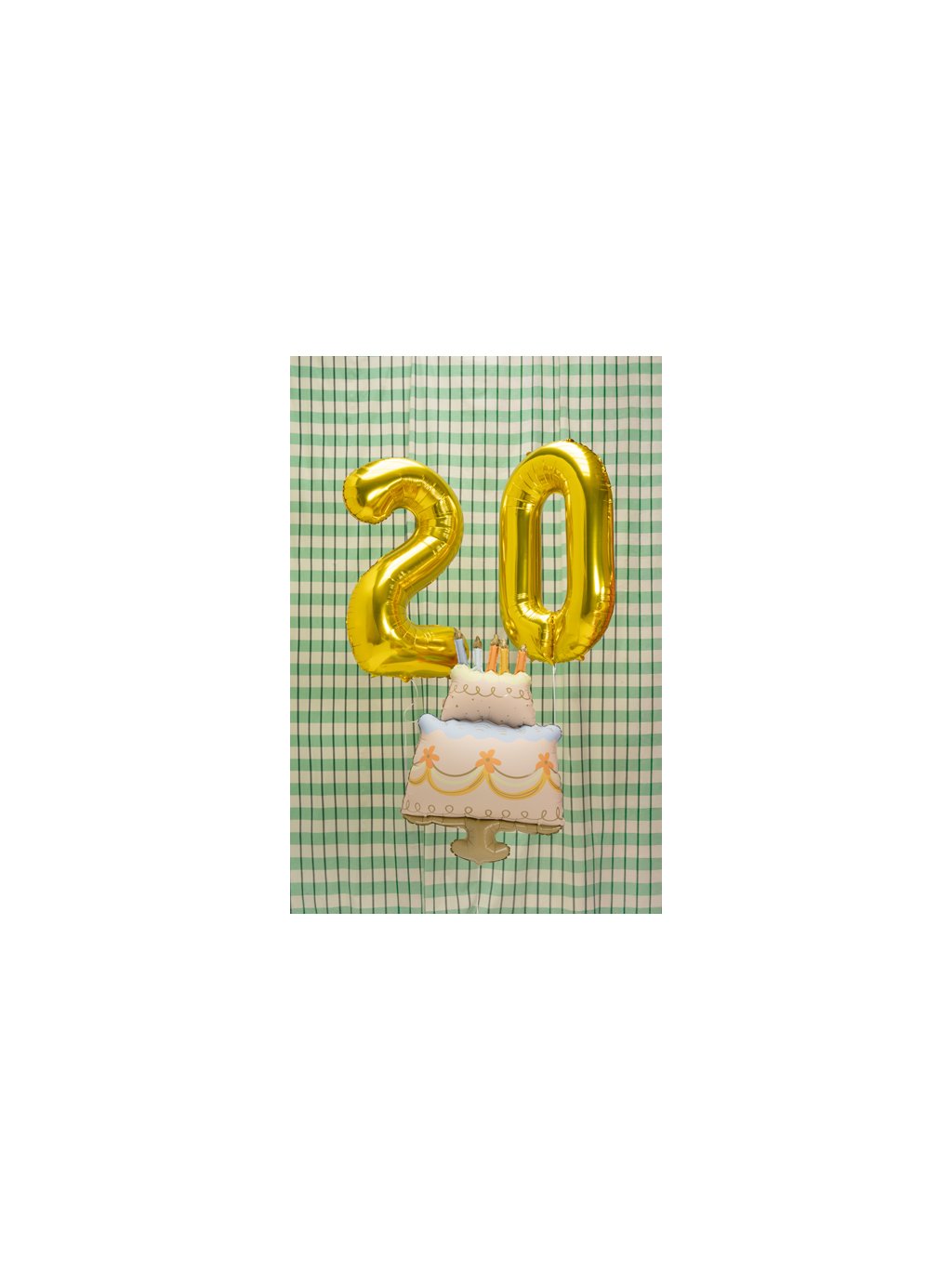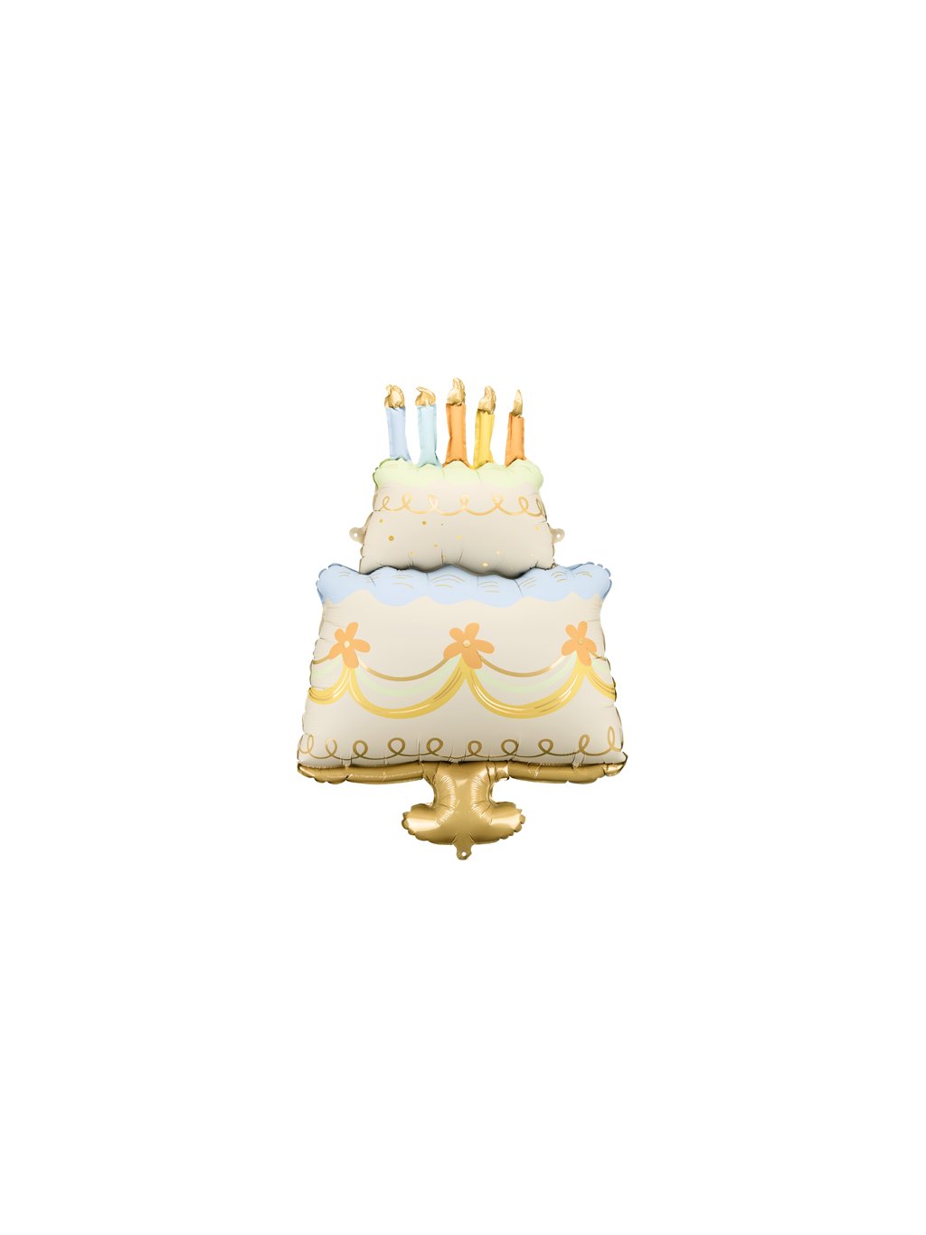 Fóliový balónek narozeninového dortu. Rozměry před nafouknutím cca 62 x 104 cm (24.5 x 41''), rozměry po nafouknutí cca 55 x 75 cm (21.5 x 29.5''). Nafouknout lze vzduchem nebo heliem. Sada obsahuje brčko pro nafouknutí.