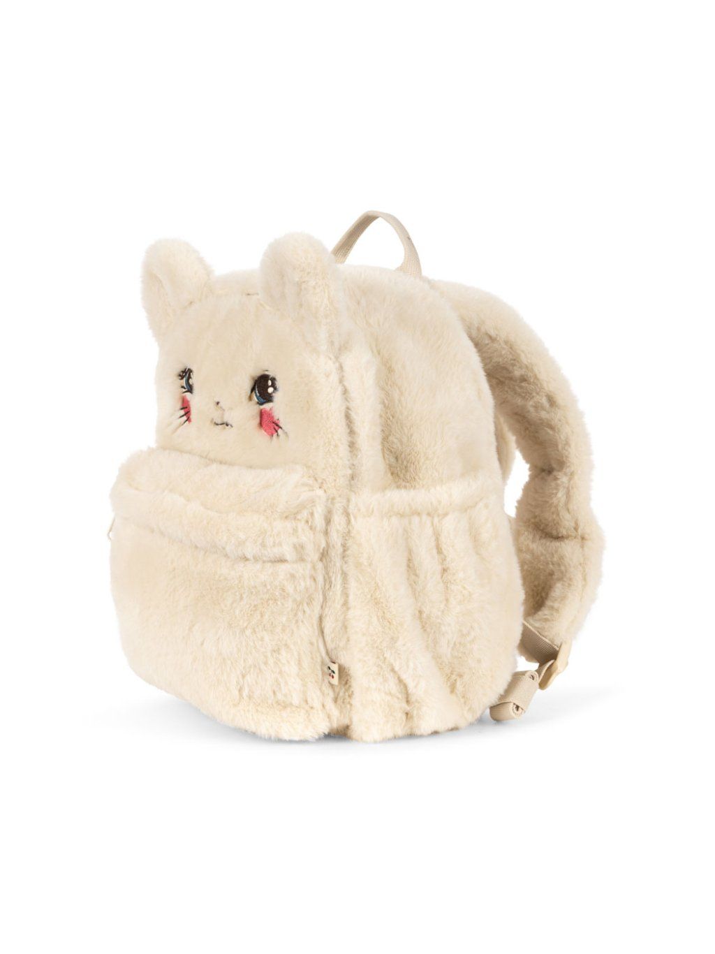 Nádherný chundelatý batůžek s výšivkou a kočičími oušky. Měkký a lehký batoh s praktickou kapsou na láhev, přední kapsou a hrudním popruhem pro podporu zad.