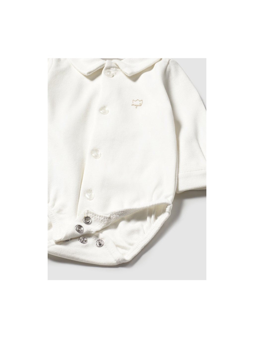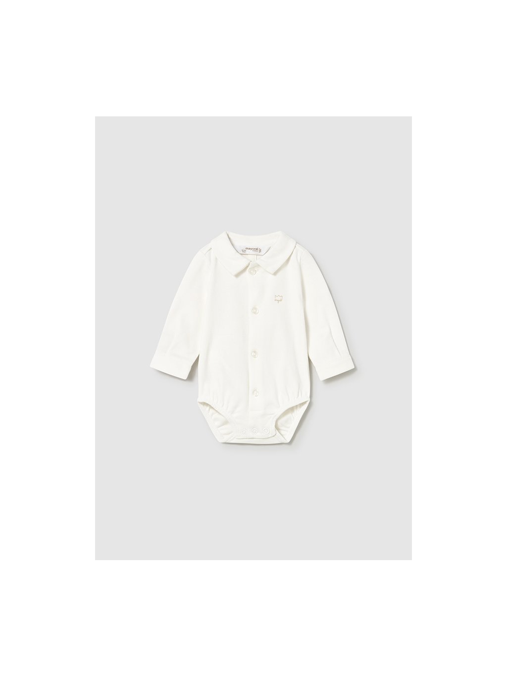 Mayoral dětské body s límečkem a dlouhým rukávem. Body je z velmi příjemného materiálu, u krku je zapínání na knoflíky. Pro snadnější oblékání, přebalování jsou cvoky i u nožiček. Body je z velmi příjemného, bavlněného materiálu.