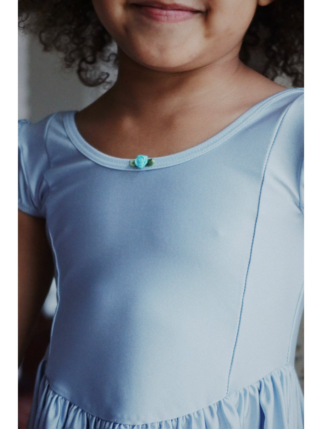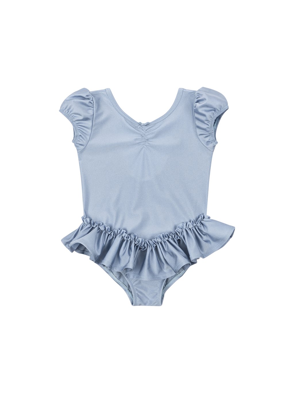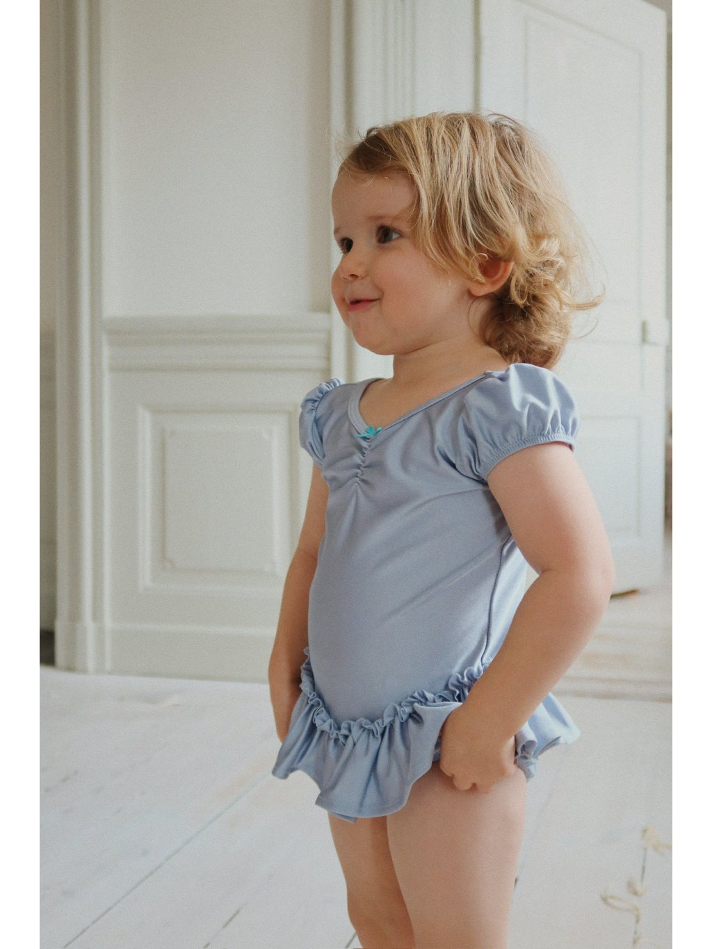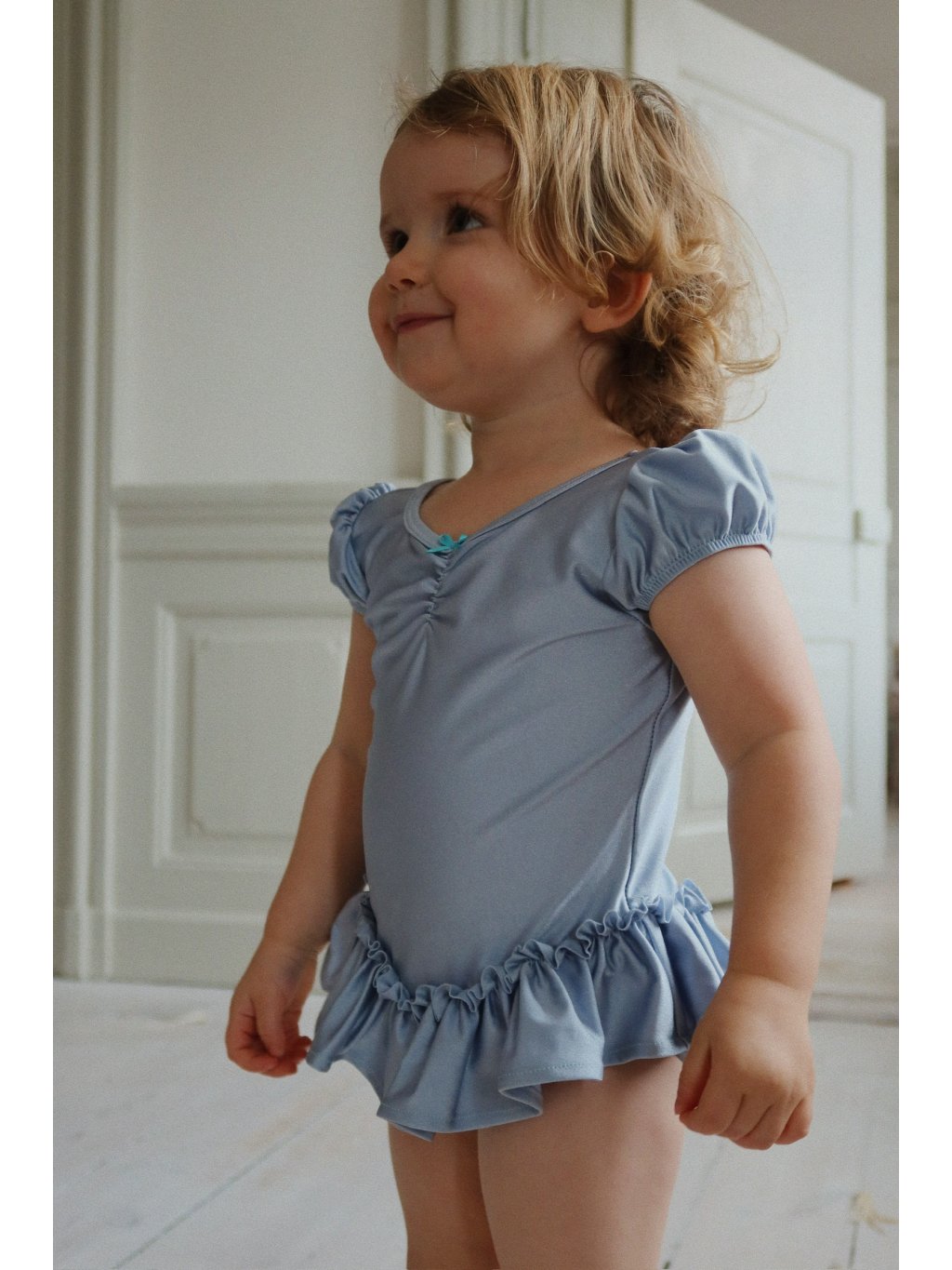 Nádherné body s volánky pro malé baletky. body je z lesklé, pružné funkční látky, ve které se snadno pohybuje. Přiléhavý střih, nabírané rukávy a volánová sukně v pase.