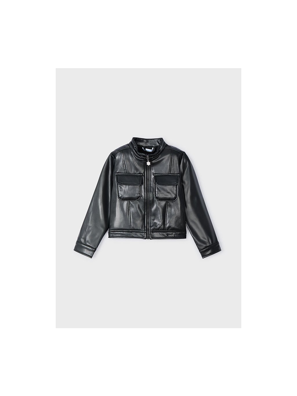 Mayoral dívčí koženková bunda s kapsami. Bunda je z velmi příjemného, měkkého materiálu, zapínání na přední straně na zip. Na prsou jsou 2 větší kapsy. Bunda je kratšího střihu!