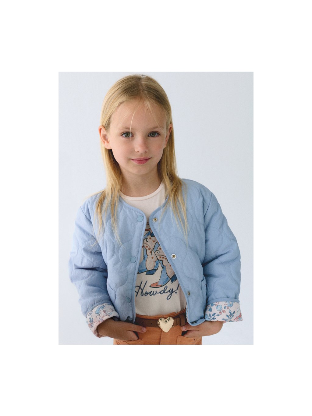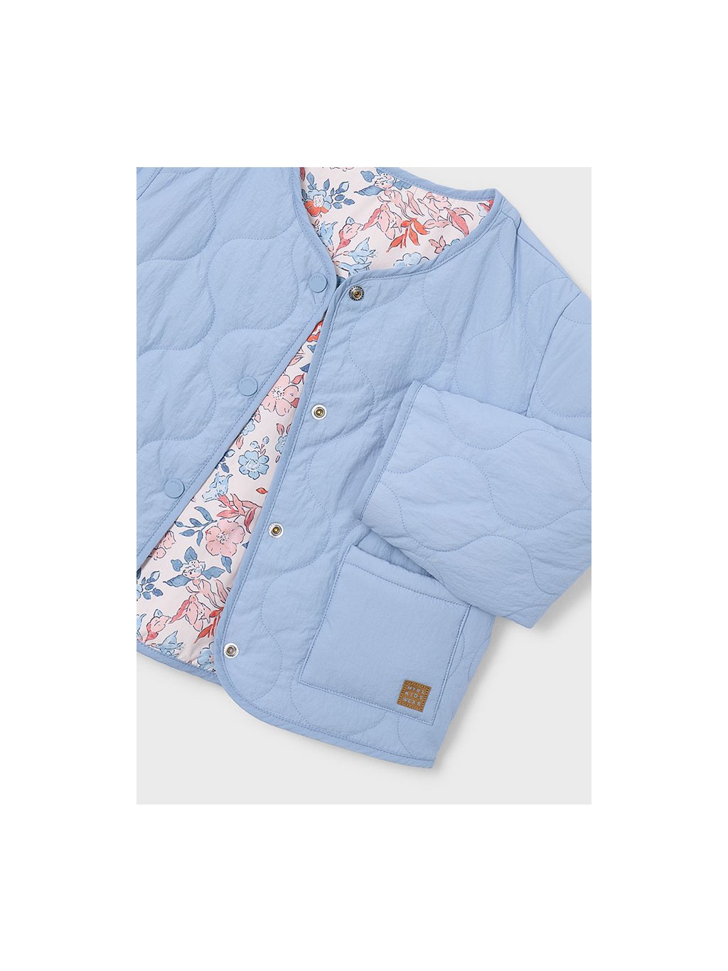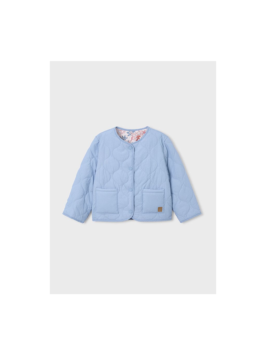 Mayoral oboustranná prošívaná bunda. Bunda je z velmi příjemného, lehoučkého, prošívaného materiálu. Z jedné strany je bunda jednobarevná a má dvě kapsy. Z druhé strany má bunda po celé ploše motiv kytiček. Bunda má zapínání na patenty.