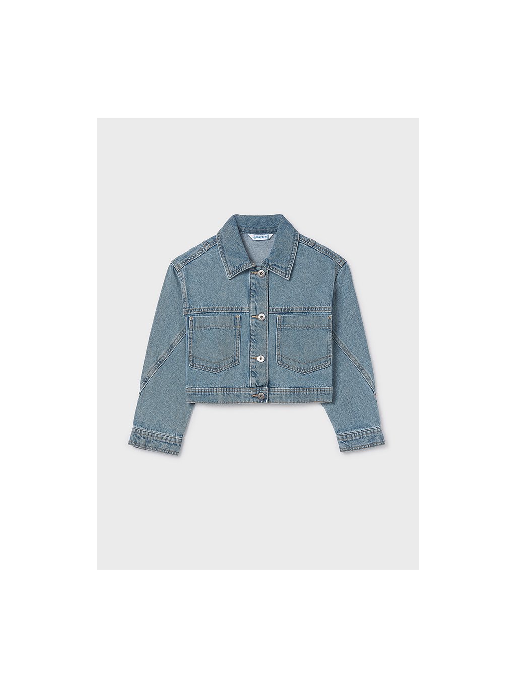 Mayoral dívčí kratší riflová bunda s kapsami. Bunda má na přední straně zapínání na knoflíky a dvě kapsy. Riflovina je velice příjemná, odlehčená.