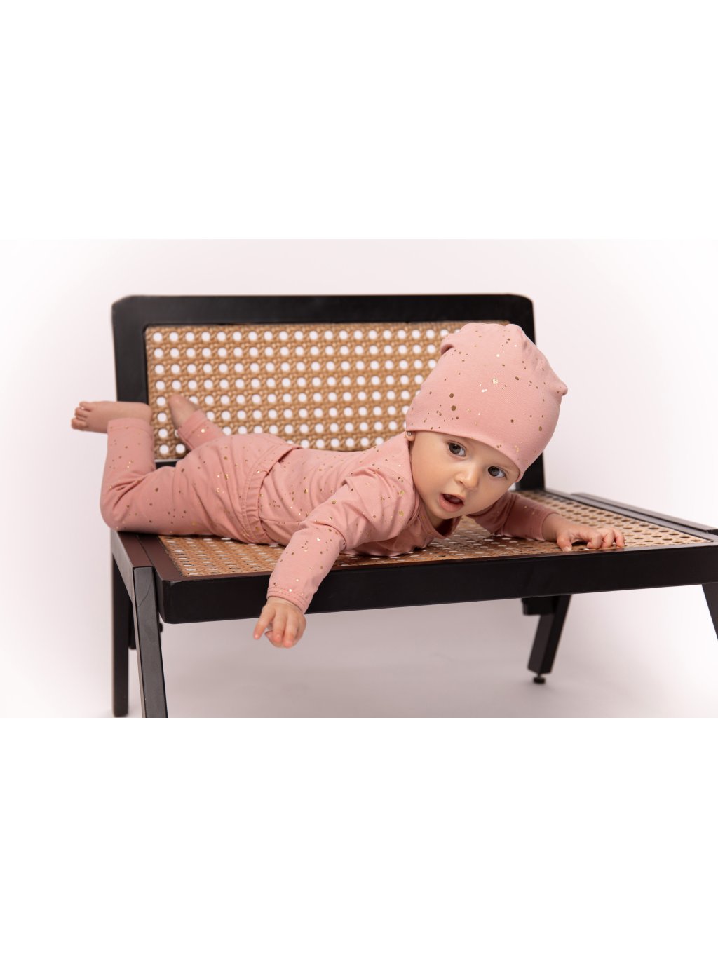 Čepice spadlá zlaté puntíky světle růžová KINGS.cz