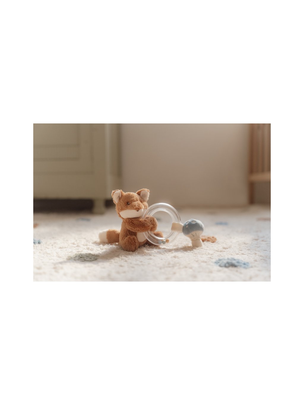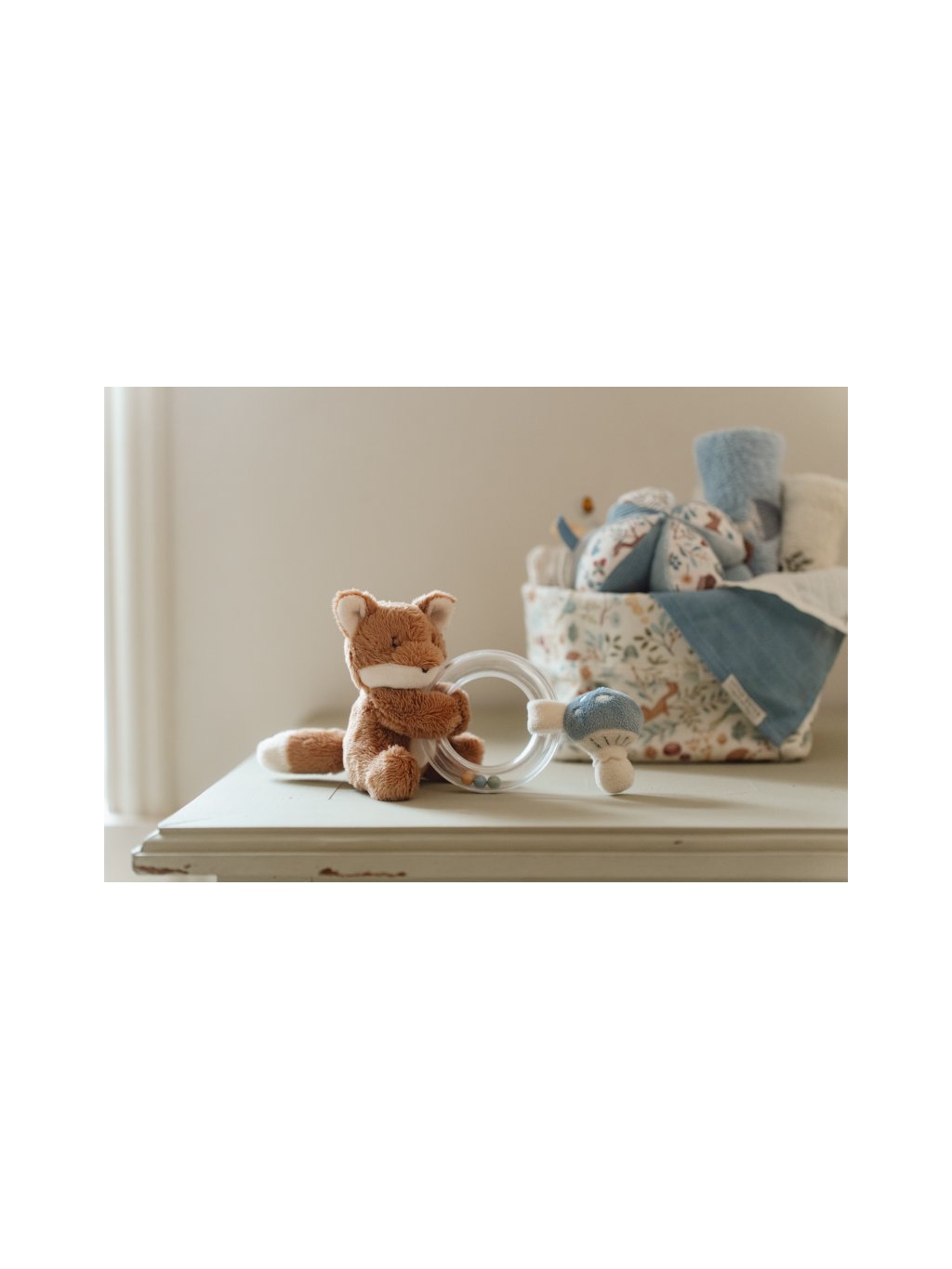 Originální chrastítko v podobě průhledného kroužku s chrastícími korálky a plyšovou liškou a houbičkou je ideální jako první hračka pro vaše miminko. Chrastítko má tvar pro snadné uchopení a různorodé textury pro zkoumání rukama i ústy.