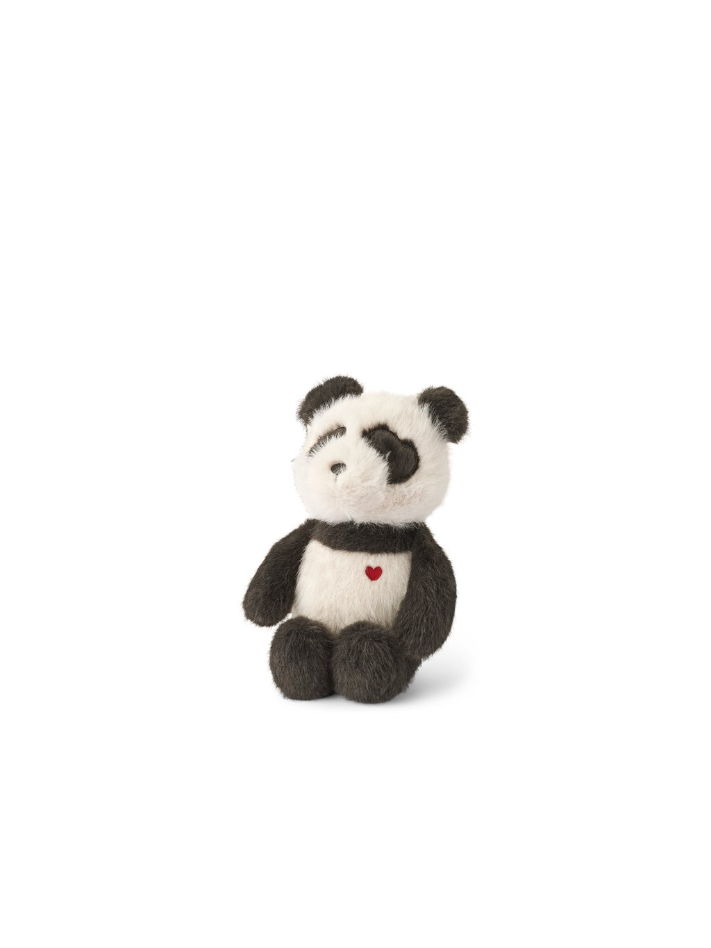 Malé a měkké plyšové chrastítko ve tvaru pandy. Délka chrastítka je 15 cm.