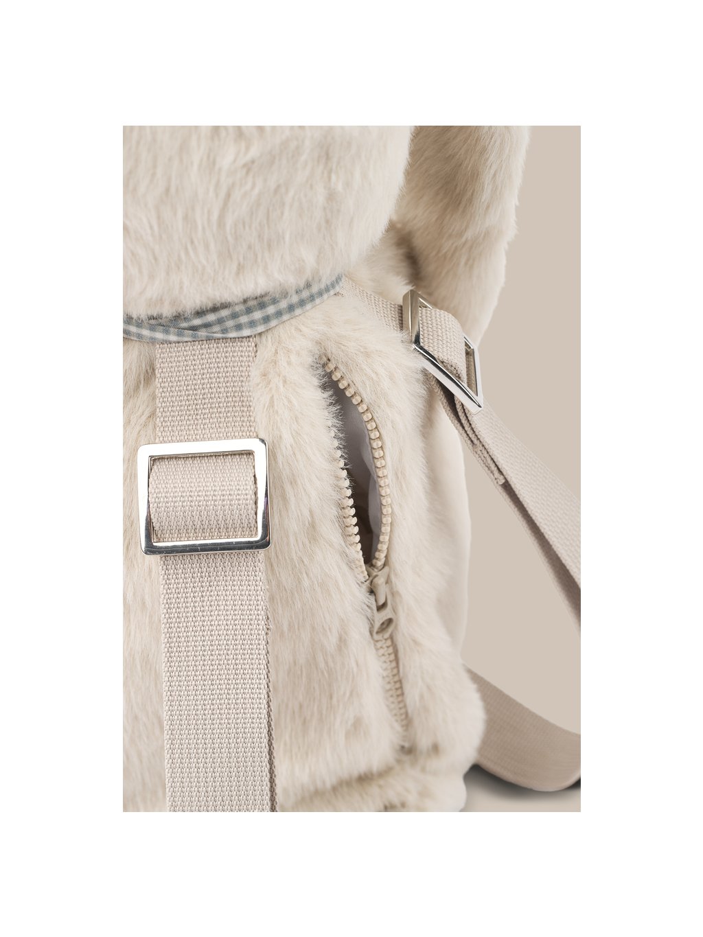 Roztomilý chundelatý batůžek v podobě králíčka.