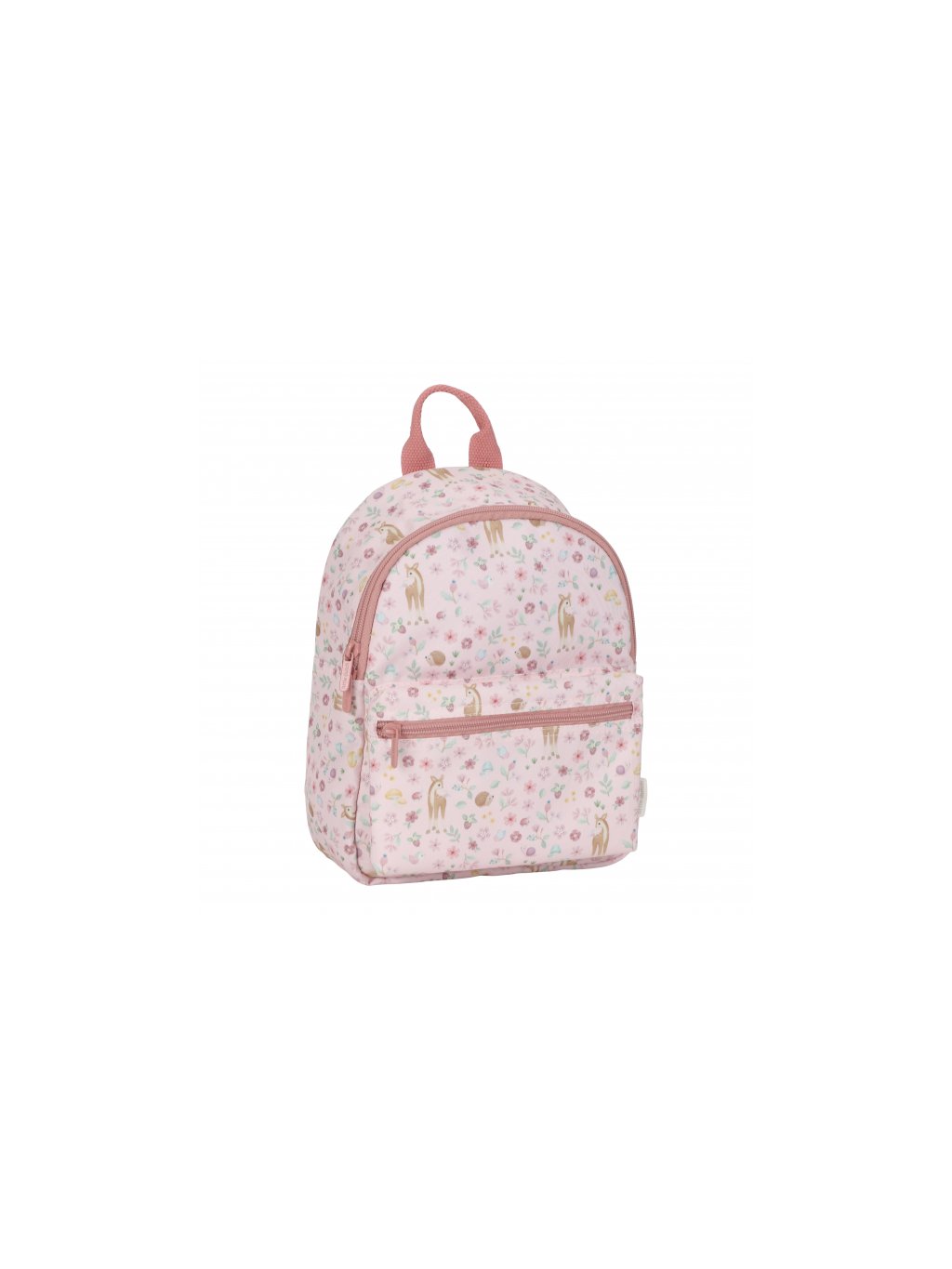 Roztomilý dětský batůžek potištěný obrázky zvířátek a motivy ze života na zahradě je ideálním doplňkem na výlety do přírody i procházky městem. Batůžek má nastavitelné ramenní popruhy a hrudní pás pro příjemné nošení. Držadlo umožňuje přenášení v ruce. Batůžek je vybaven vnější kapsou na zip pro uložení drobností a vnitřní prostor s kapsou, elastickým držákem na pití a jmenovkou.