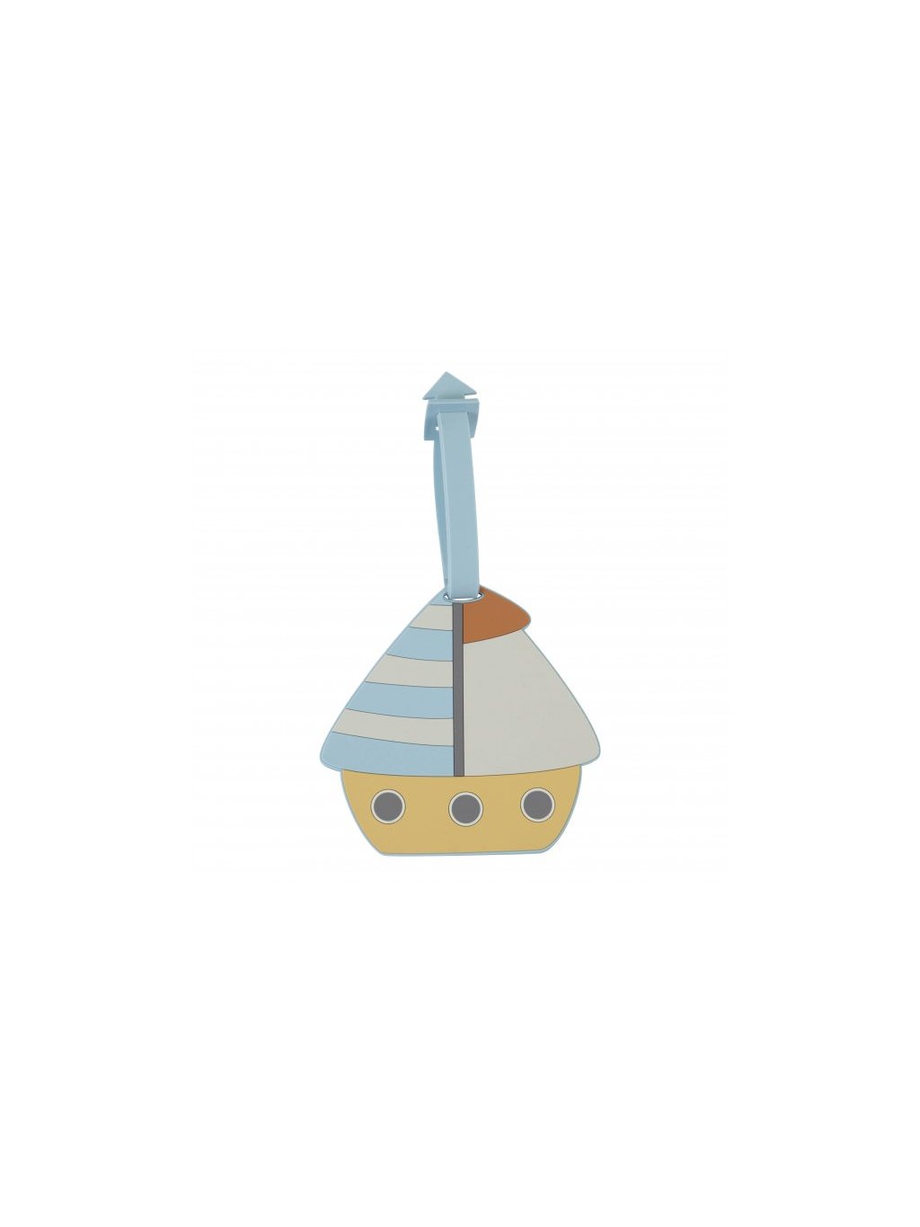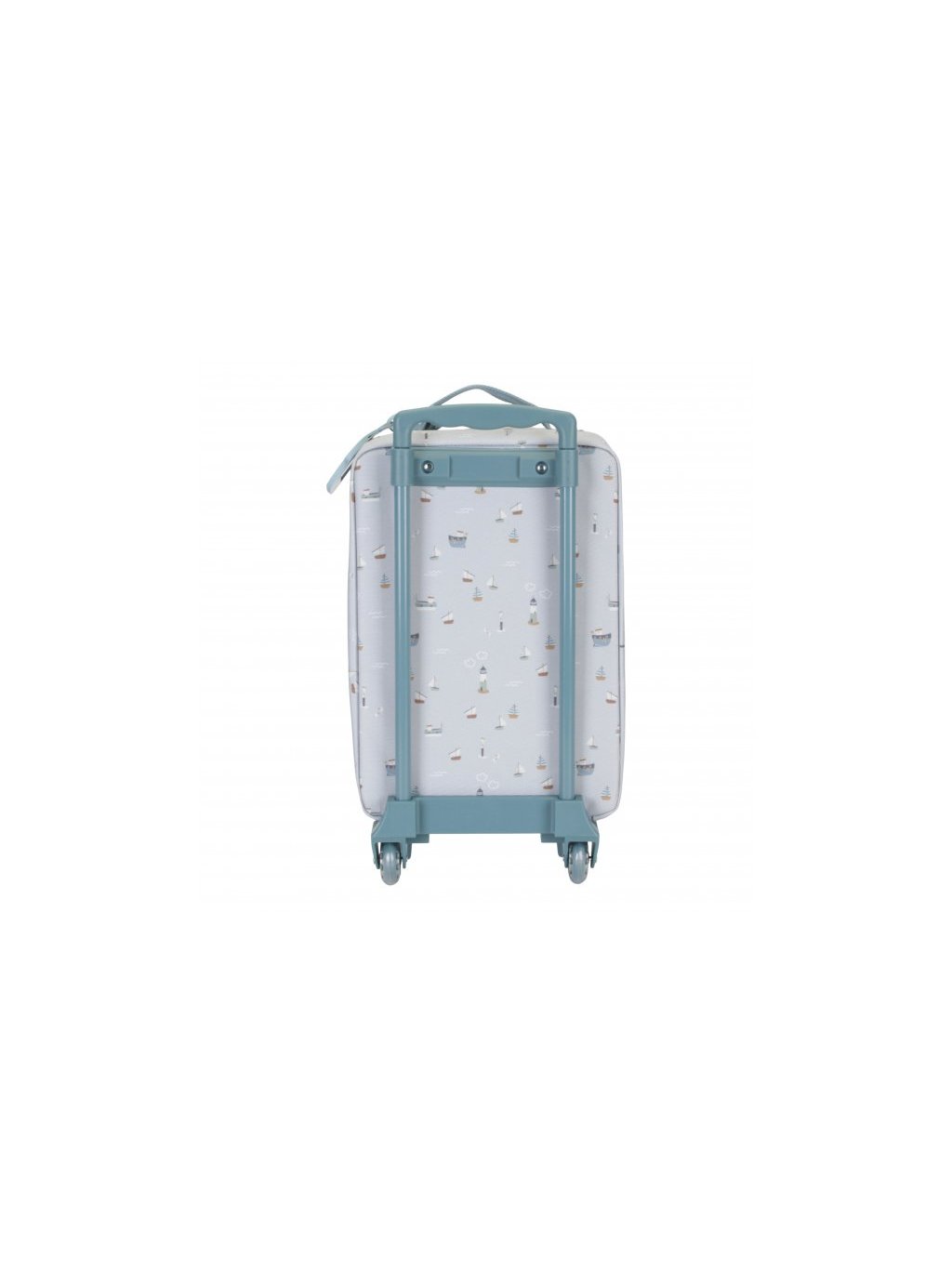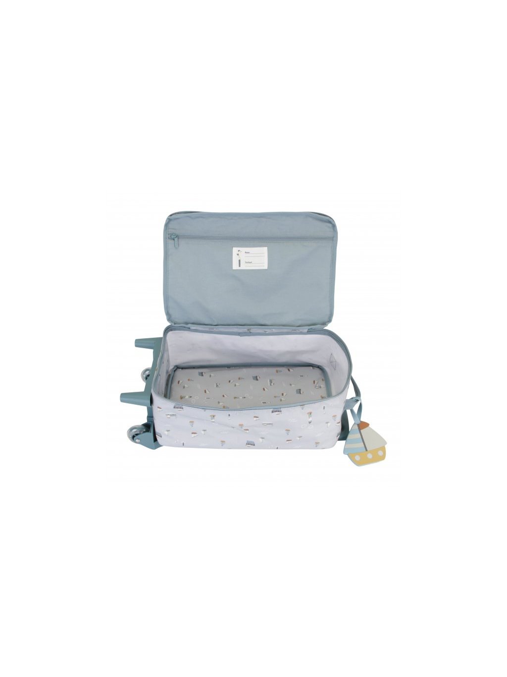 Dětský látkový kufr na kolečkách. Kufr má motiv námořnický záliv.