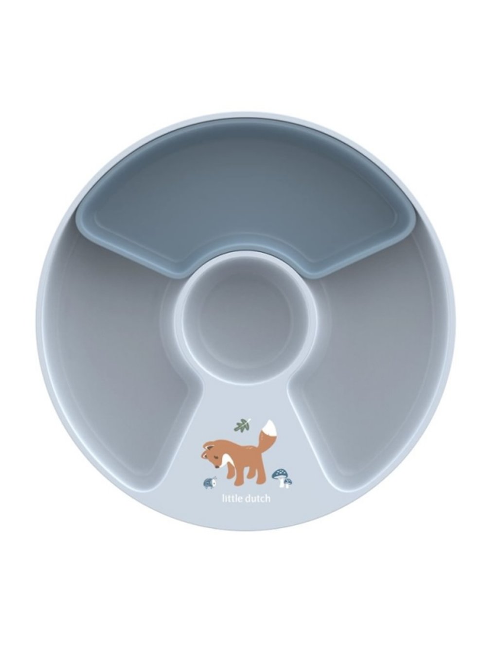 Dětský talíř s krásným potiskem má protiskluzové dno a vysoký okraj, který pomáhá dítěti jídlo nabrat na lžíci. Talíř je tak ideální pro první samostatné stolování dítěte. Vyjímatelná přihrádka umožňuje rozdělení jednotlivých částí jídla do 2, 3 nebo 4 přihrádek. Díky praktickému úchytu se talíř snadno přenáší. Je vyroben z lehkého, mimořádně odolného plastu.