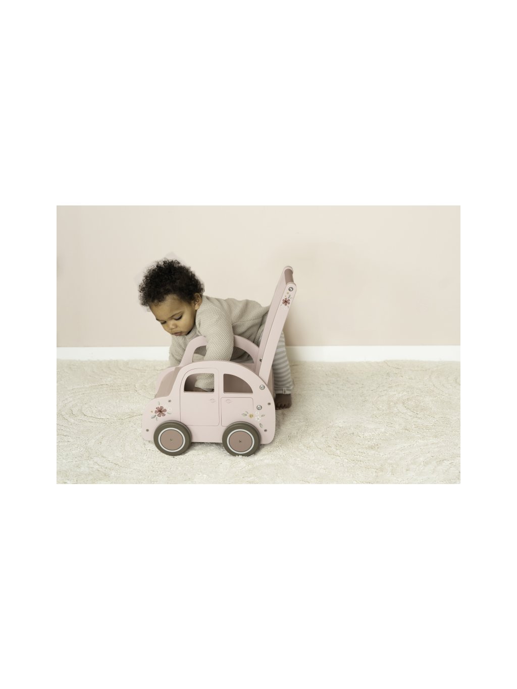Chodítko se stabilní konstrukcí v podobě růžového auta je ideální pro trénování chůze dětí od 12 měsíců, které jsou téměř připraveny učinit první kroky. Užijte si společně radostné okamžiky, když vaše dítě poprvé přejde celou místnost. Díky svému provedení chodítko slouží i jako vozík, do kterého si dítě může naložit své oblíbené hračky. Chodítko pomáhá rozvoji rovnováhy, koordinace a motoriky dítěte. Gumové kroužky na kolečkách ochrání vaši podlahu před poškozením a jsou bezpečná pro použití v interiéru.