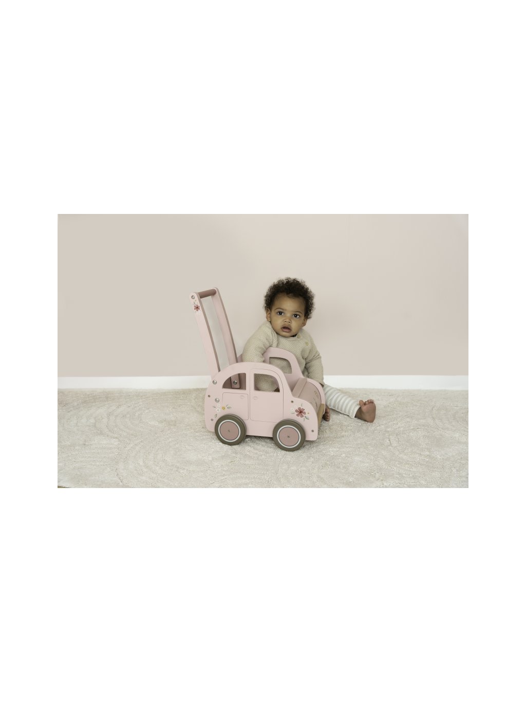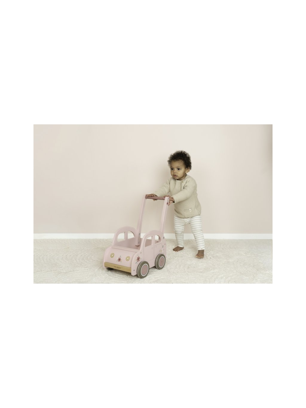 Dřevěné chodítko auto růžové Little Dutch