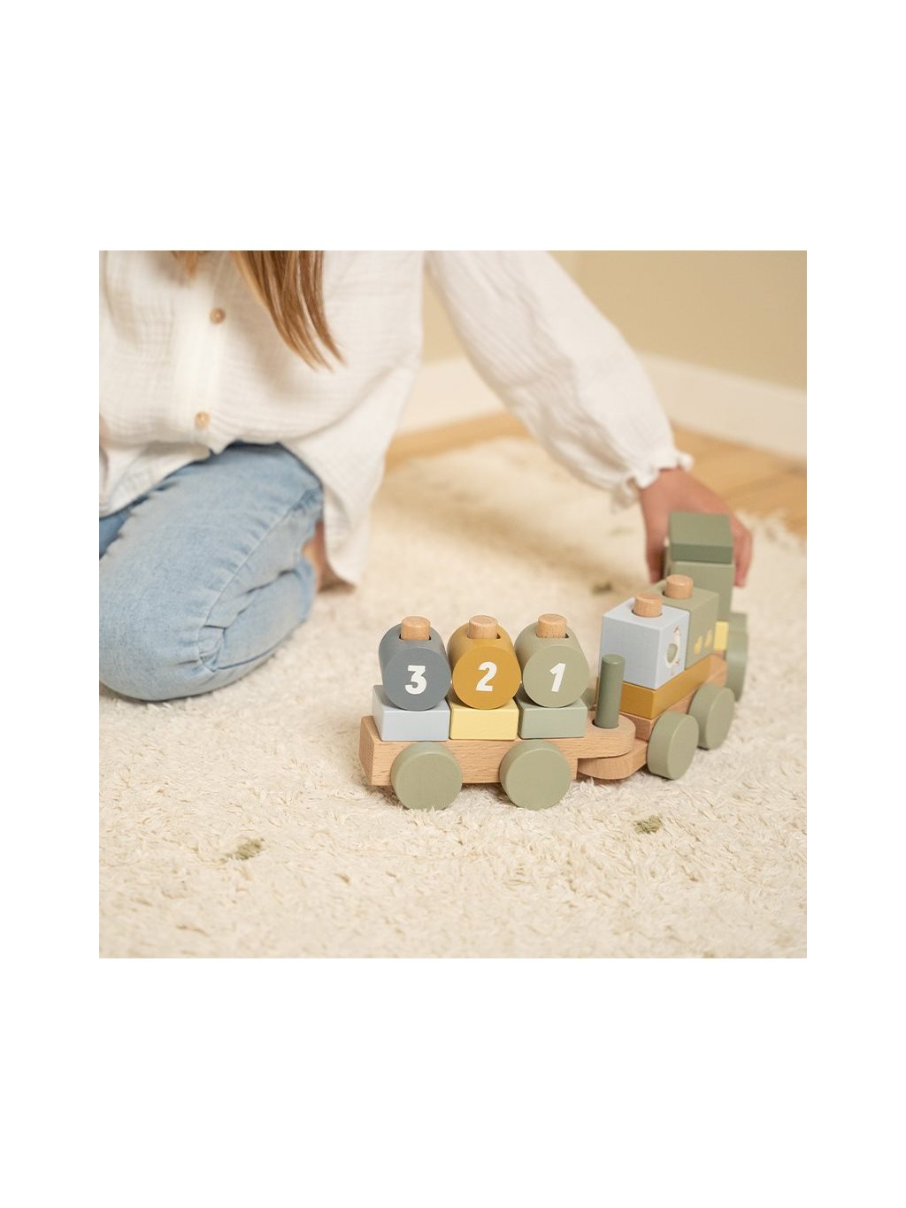 Jedeme vlakem! Tento dřevěný vlak, tažený traktorem, je na cestě na místní farmu. Použijte svou představivost a postavte vlak pomocí skládacích kostek v různých tvarech. K dispozici jsou 3 vagóny, kde se dají převážet právě zvířátka na farmu. Vyzvěte své děťátko, aby podpořilo koordinaci ruka-oko a jemné motorické dovednosti. Je také pěkným doplňkem do dětského pokoje nebo herny.
