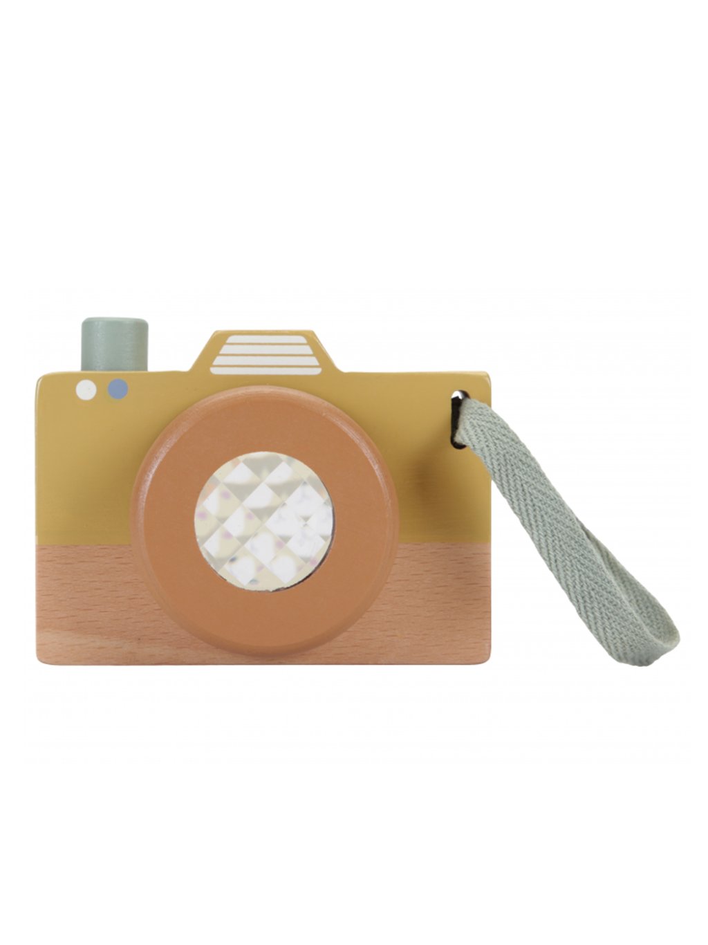 Dřevěný fotoaparát s poutkem na zápěstí si vaše dítě může snadno nosit všude s sebou - na procházku, do zoo i k babičce. Pohled na svět v přes objektiv v podobě kaleidoskopu bude vždy barevný a zábavný! Mačkací spoušť umožňuje malému fotografovi zažívat pocit skutečného focení.