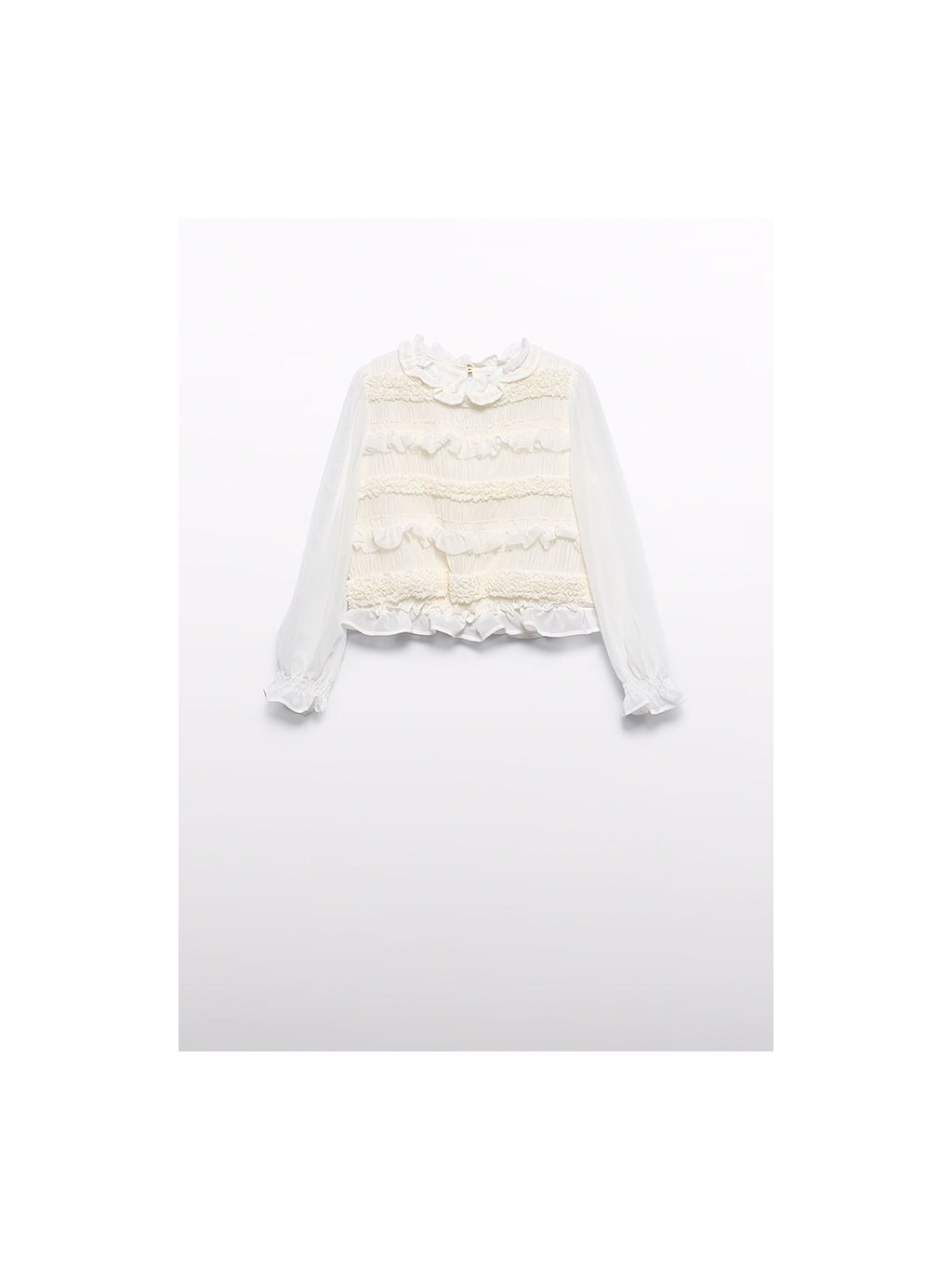 Halenka s dlouhým rukávem a volánky smetanová Abel and Lula