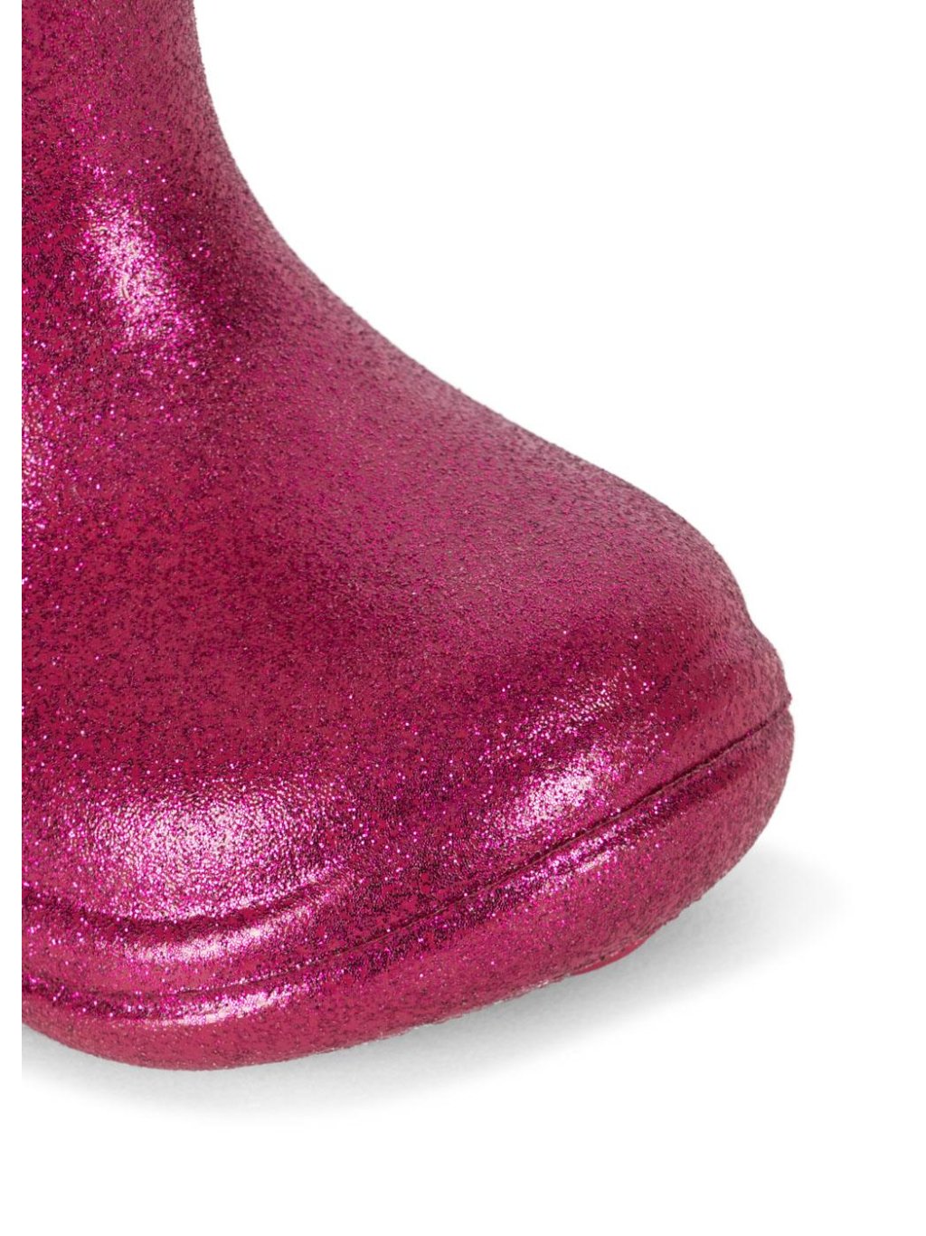 Lehké holinky do deště, které se třpytí a lesknou bez ohledu na počasí, díky nimž je každá louže pořádnou párty! Holínky Luc mají střih, který není ani příliš vysoký, ani příliš nízký, a proto se nejlépe nosí s legínami nebo ponožkami pod nimi, aby se příliš nedrhly o jemnou pokožku rychlých nožiček. Třpytivý potisk může časem v důsledku běžného opotřebení vyblednout.