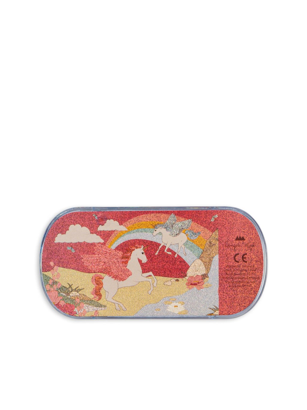 Tlačítková hra s motivem jednorožců. Uvnitř hry je tekutina, kroužky a dva vrcholy. Cílem hry je dostat co nejvíce kroužků na dané dva vrcholy. Hra je ideální pro posílení jemných motorických dovedností a soustředěnosti. Ideální na cesty.