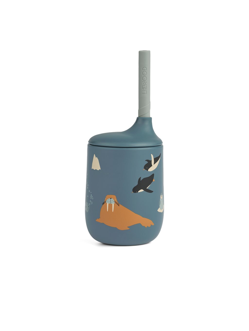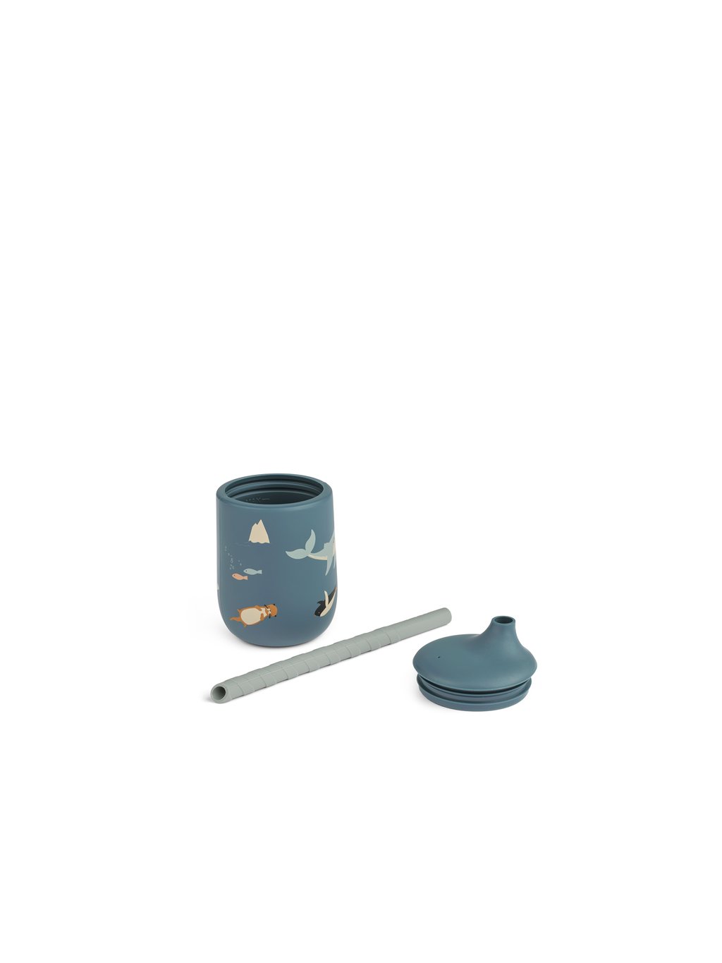Hrnek silikonový s brčkem Ellis Arctic Sea / Ocean view 230 ml Liewood