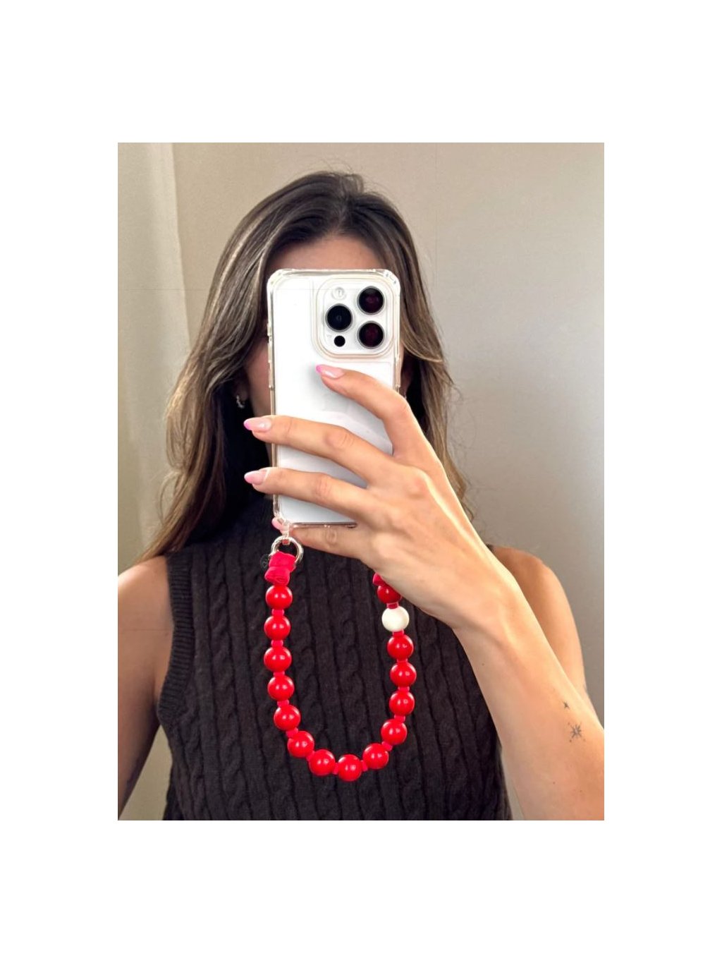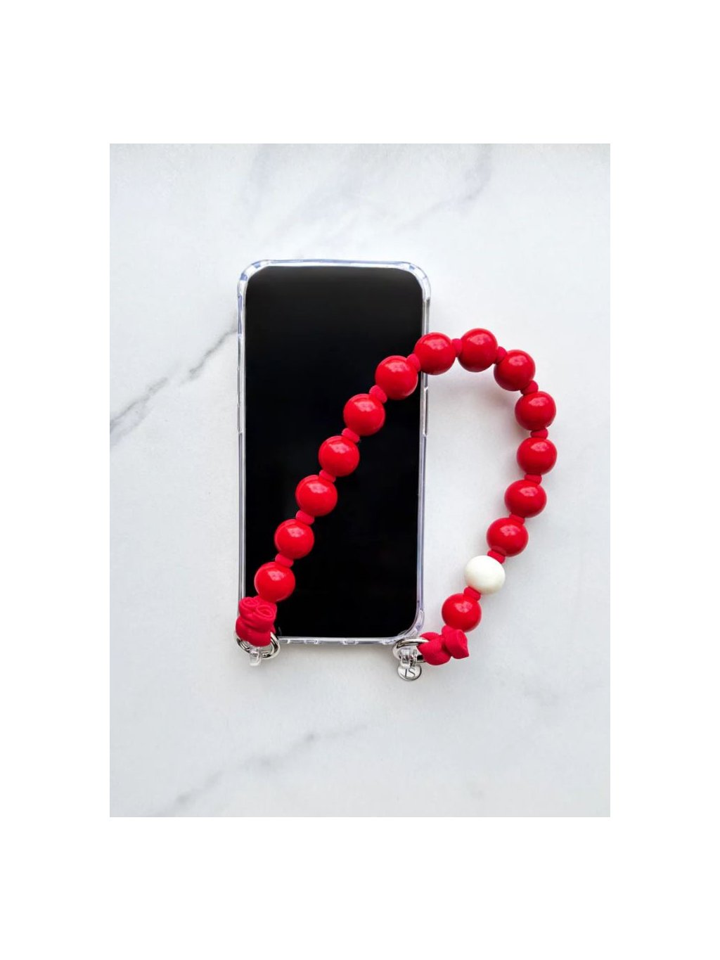 Řetízek na iPhone z velkých, barvených dřevěných korálků. Koupit lze s průhledným pouzdrem na iPhone nebo bez něj. K dispozici jsou různé typy obalů na iPhone.