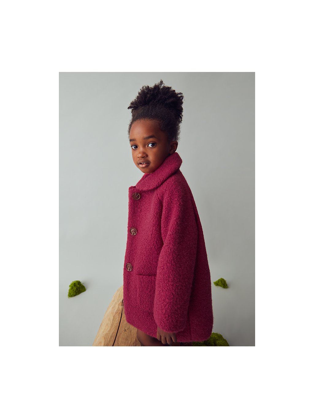 Kabát zimní s límečkem krulový vínový MINI Mayoral