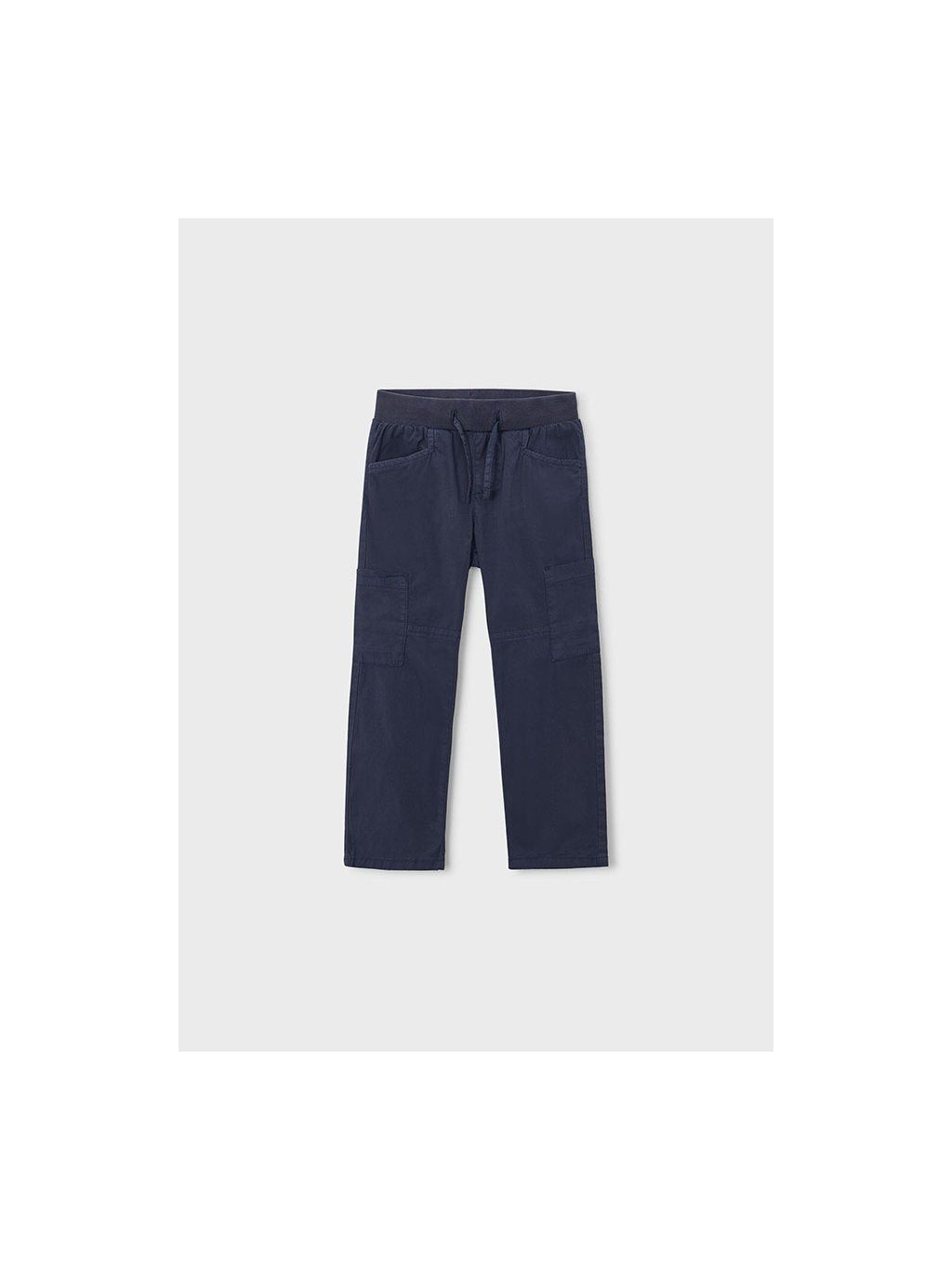 Mayoral chlapecké plátěné natahovací kalhoty. Kalhoty jsou z velmi příjemného, lehoučkého materiálu. V pase je pružná guma a šňůrky na stažení, stejně tak i kapsy. Další kapsy jsou u kolen.