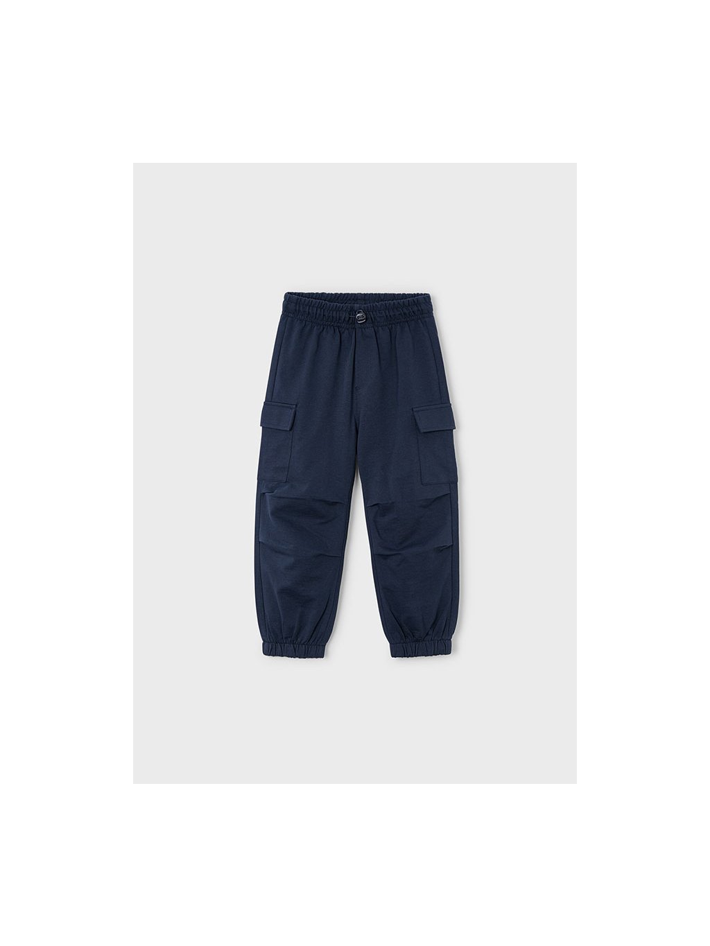 Mayoral chlapecké teplákové kalhoty s kapsami. Tepláky jsou z velmi příjemného materiálu. V pase je gumička na stažení za pomocí spony. U kolen mají kalhoty 2 funkční kapsy. Ve spodní části nohavic jsou gumičky.