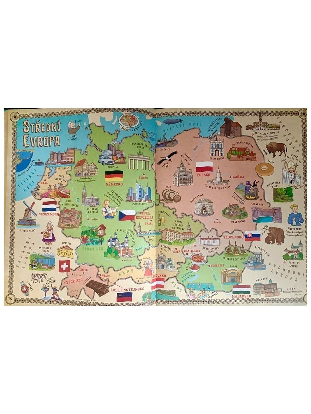 Každá země je představena vlajkou a základními informacemi o zvycích a tradicích. Kniha se také zaměřuje na významné historické osobnosti, umělecká díla a hlavní památky. Nechybí ani zobrazení fauny a flóry jednotlivých oblastí, což pomáhá mladým čtenářům lépe pochopit biodiverzitu naší planety.