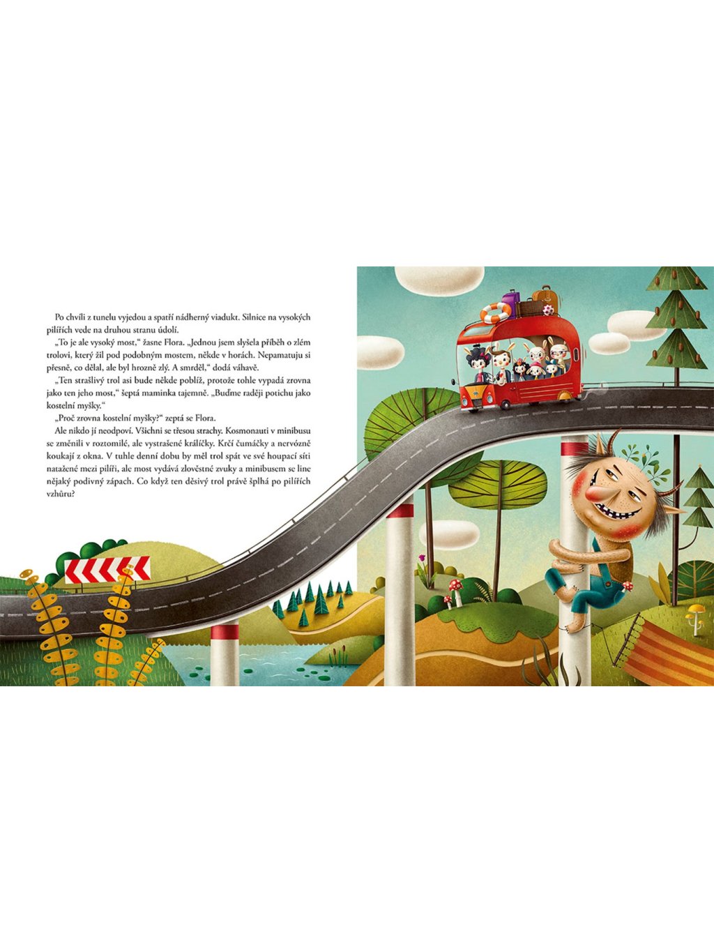 Holčička Flora se svou rodinou a nejlepší kamarádkou Leou vyráží na návštěvu k prarodičům na venkov. Protože je cesta dlouhá a nudná, střídají se rodiče ve vymýšlení kouzelných zemí, kterými projíždí. A tak se ocitnou v jurském parku plném dinosaurů i v zemi skřítků, pak se jejich auto promění v kosmickou loď a zamíří do jiné galaxie, ale nakonec přistane v údolí, kde žije troll. A dojde i na pozorování ptáků, návštěvu indiánů, setkání s ledními medvědy a mnoho dalších dobrodružství. Užijte si je taky!