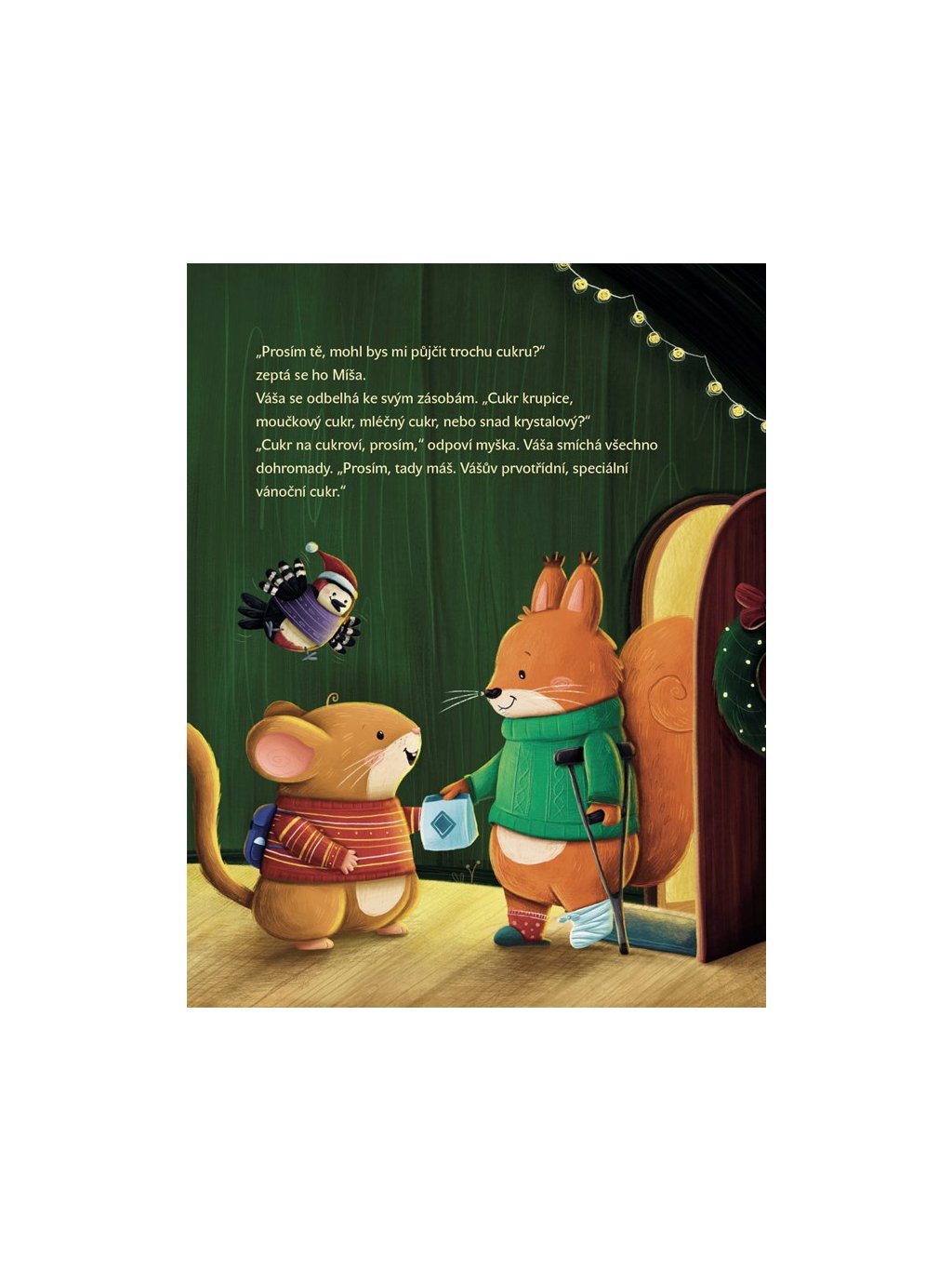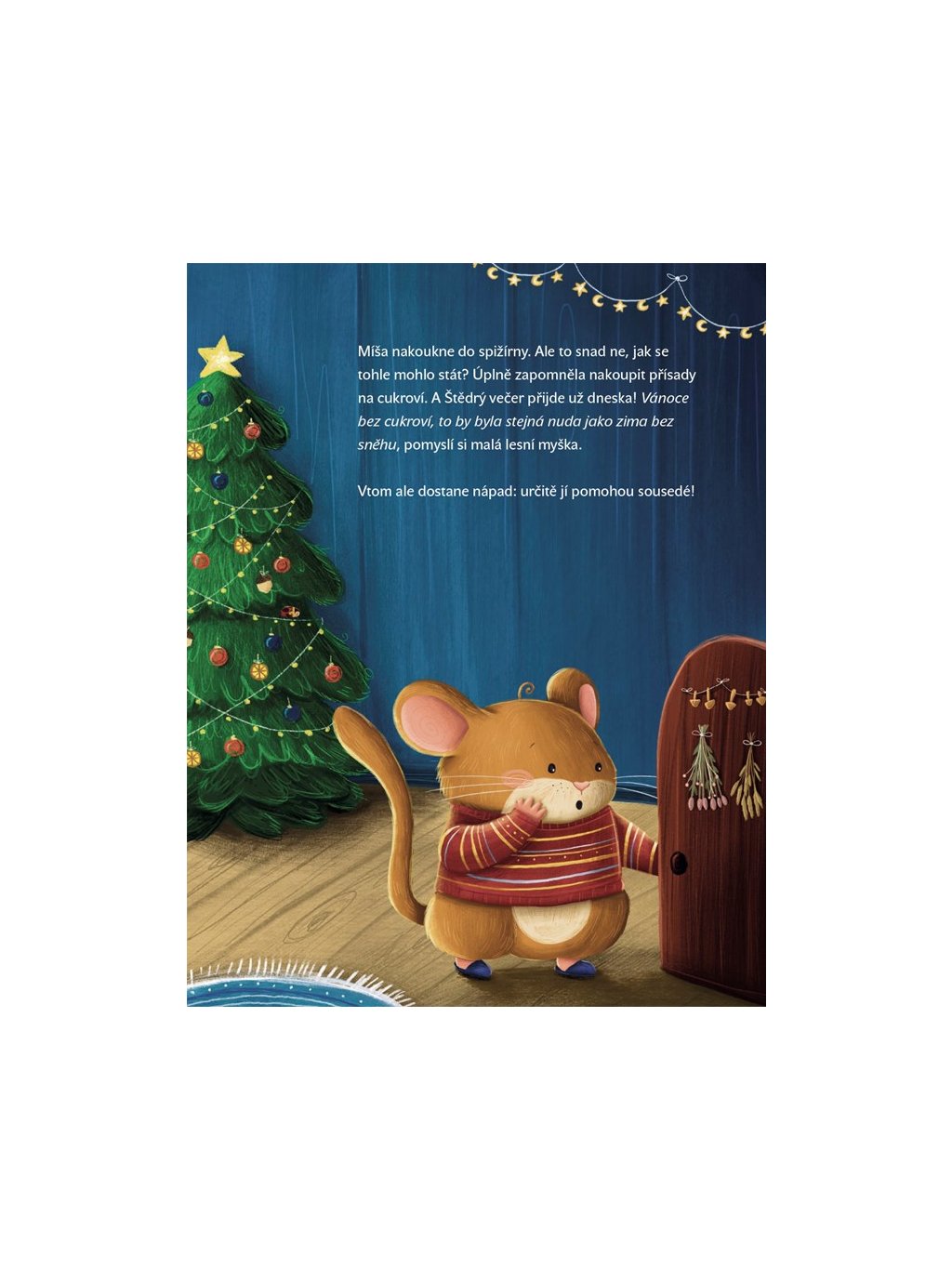 Myška Míša by chtěla potěšit všechny své sousedy ve stromovém domě a upéct jim vánoční cukroví. Jenže, achich ouvej, spižírna je dočista prázdná! Kde teď, na Štědrý den, vezme všechny přísady na těsto? Nezbývá než všechna zvířátka obejít, jistě jí ráda vypomohou. Míša jim na oplátku pomůže nacvičit koledy, ozdobit stromeček, pohlídat děti… Zbyde jí ale nakonec vůbec nějaký čas na pečení?