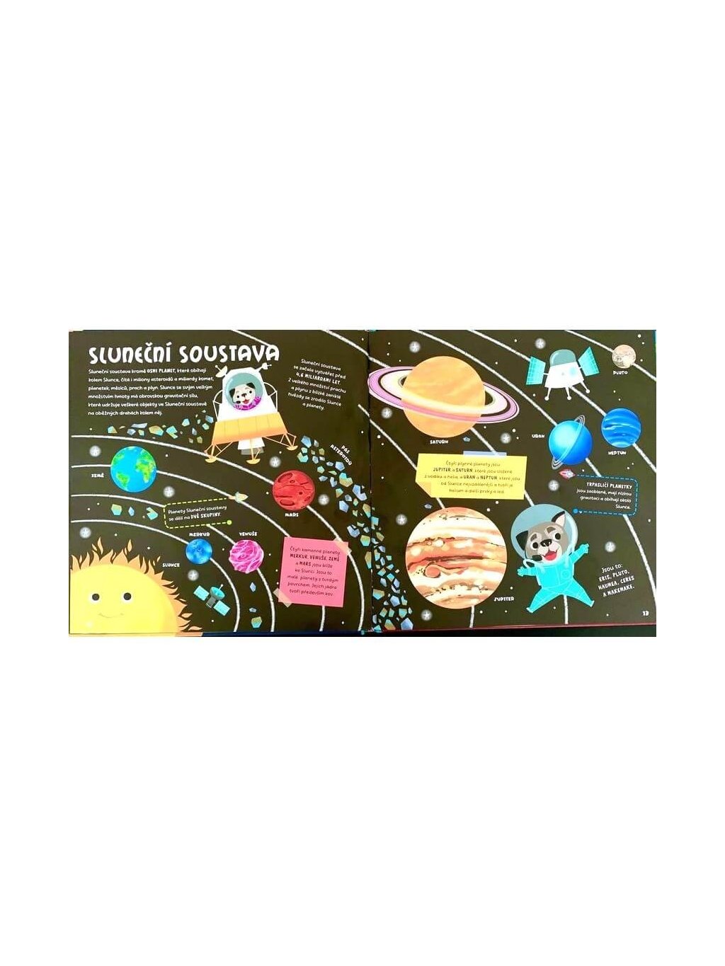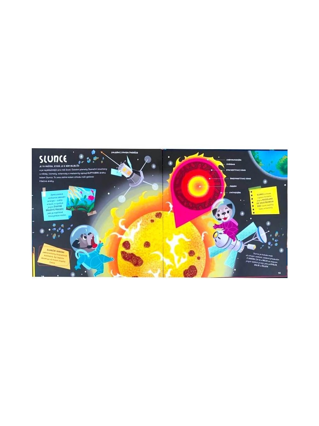 Vesmír je trochu jako dřevěné panenky, které v sobě schovávají další a další, jen trochu menší: žiješ v domě, který je v nějakém městě nebo vesnici, které se zase nacházejí v nějaké oblasti, regionu, nebo kraji, v zemi, na kontinentu, na planetě zemi, v Sluneční soustavě. Otevři tuhle úžasnou knížku, je plná planet, oběžnic, asteroidů i meteorů. To všechno patří k naší Sluneční soustavě. Tahle bezva knížka Ti jasně a jednoduše vysvětlí, jak vypadá ten náš " velký domov". Je plná úžasných ilustrací, Pojď s námi prožít vesmírná dobrodružství.