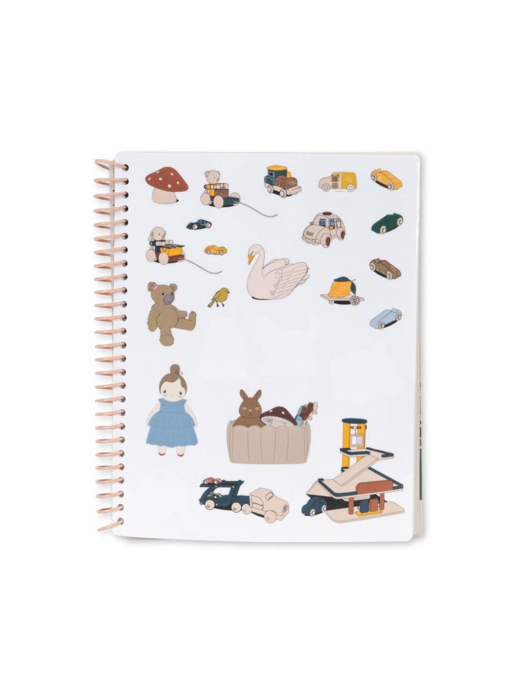 Zábavná kniha samolepek s opakovaně použitelnými samolepkami. Obsahuje 6 různých deskových stránek s různými světy a vesmíry. Vytvořte si svůj vlastní svět s různými samolepkami. Vyrobeno ze 100% papíru.