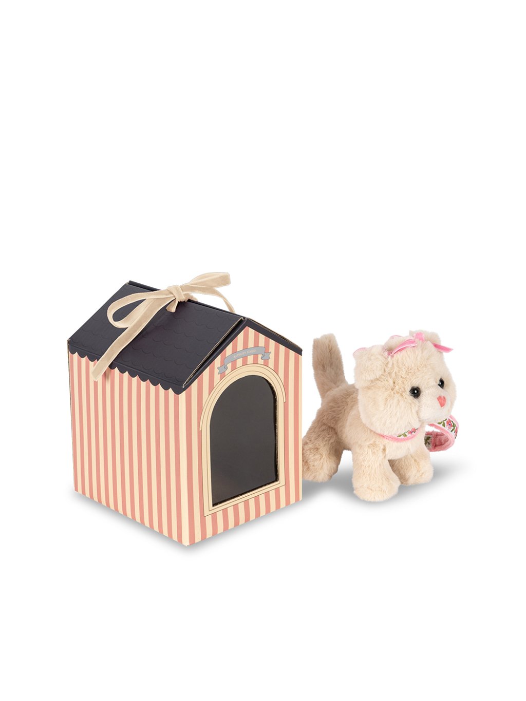 Měkká kočička s vlastním malým domečkem, který se snadno přenáší. Malá kočička má také vlastní vodítko, takže si ji můžete vzít kamkoli s sebou.