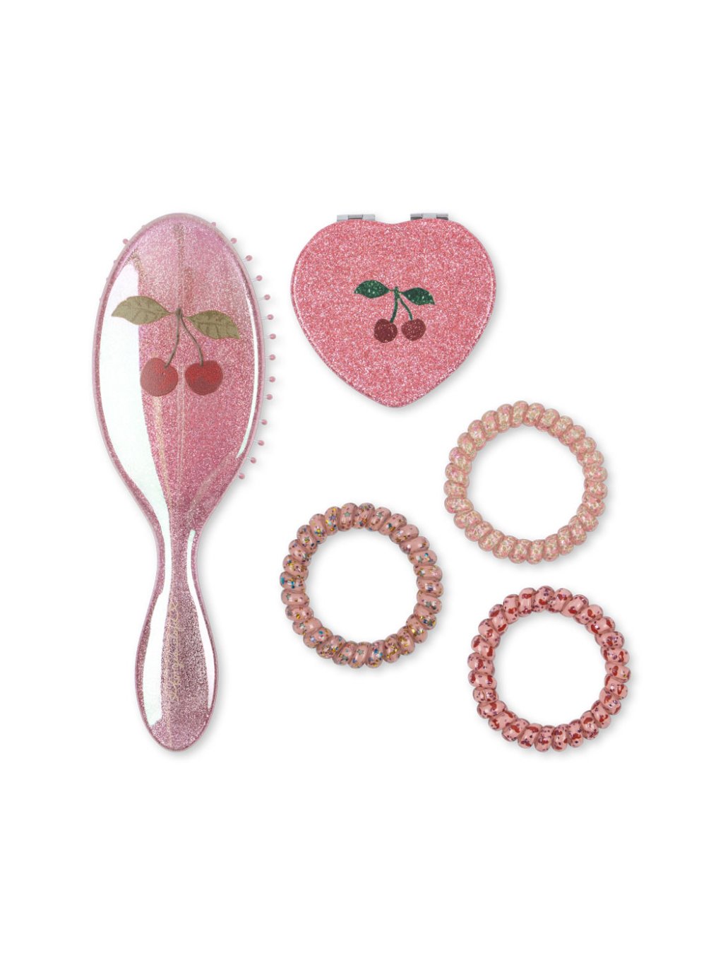 Dívčí kosmetická taštička plná dívčích nezbytností. Sada obsahuje taštičku, kapesní zrcátko, kartáč na vlasy a 3 gumičky.