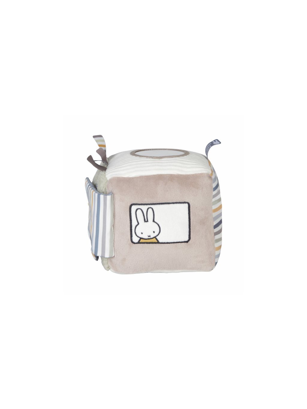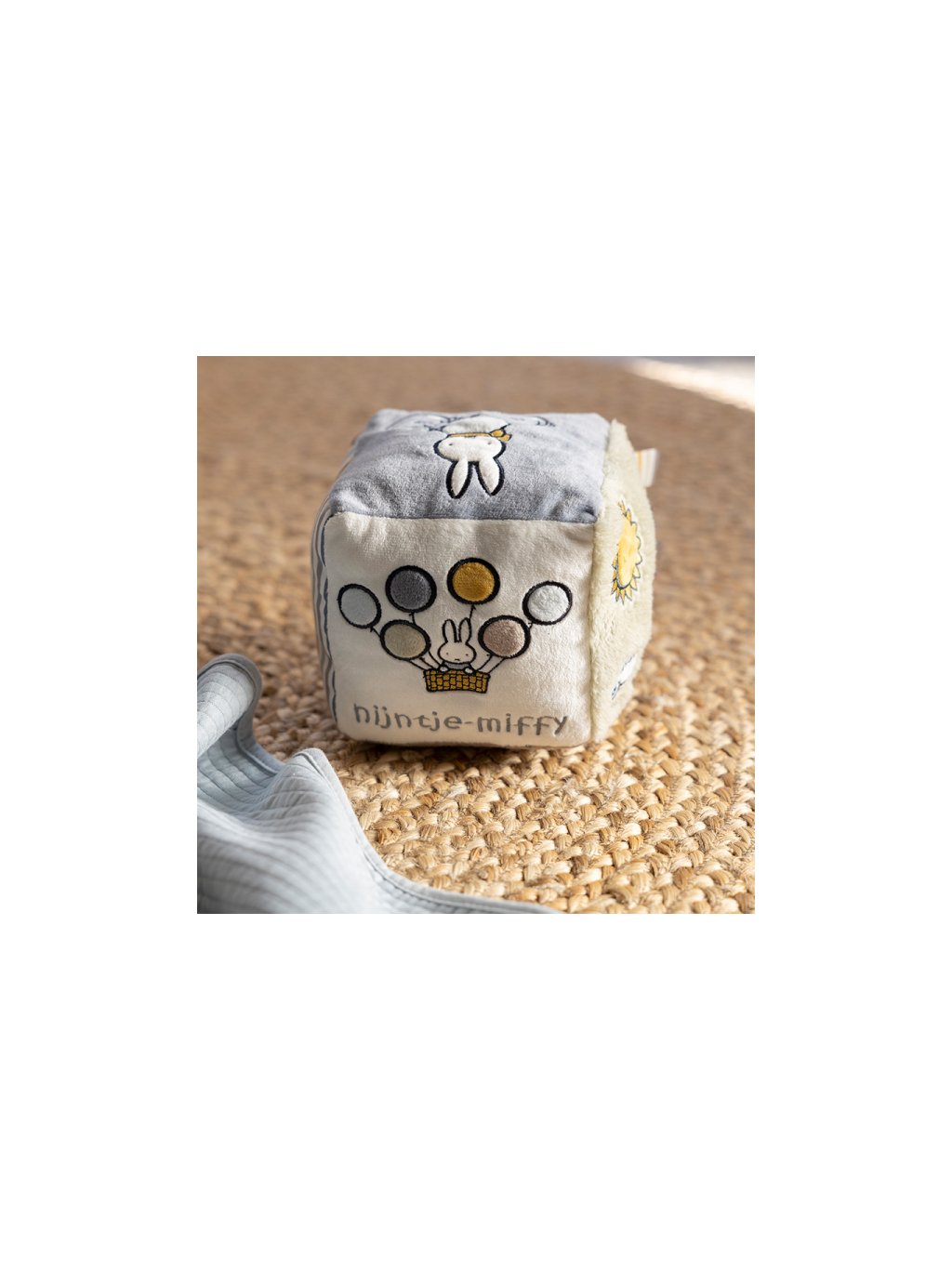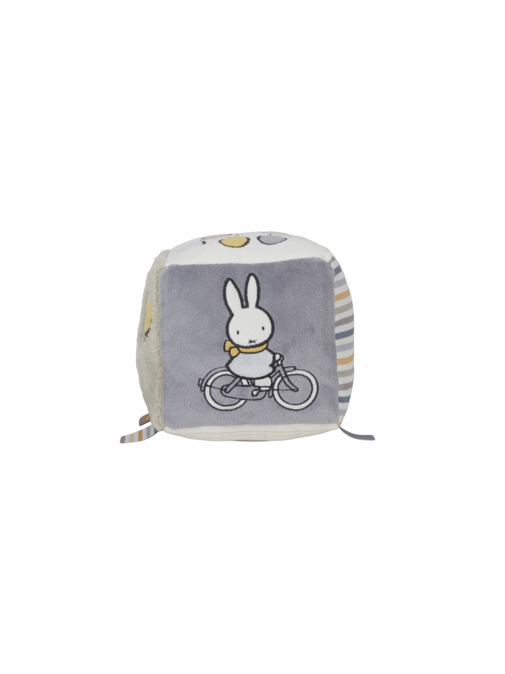 Měkká plyšová kostka je díky svému provedení snadno uchopitelná malými dětskými ručičkami. Různorodé textury a vzory lákají dítě ke zkoumání, kostka navíc při pohybu jemně cinká. Hračka je součástí kolekce hraček Little Dutch Miffy, jejichž ústřední postavou je roztomilá králičí holčička Miffy, známá z knížek pro děti holandského spisovatele Dicka Bruny.