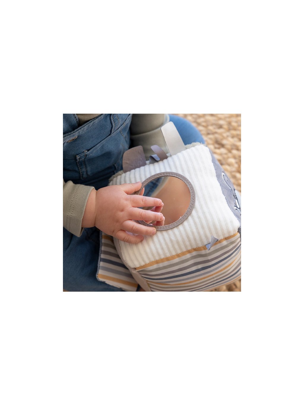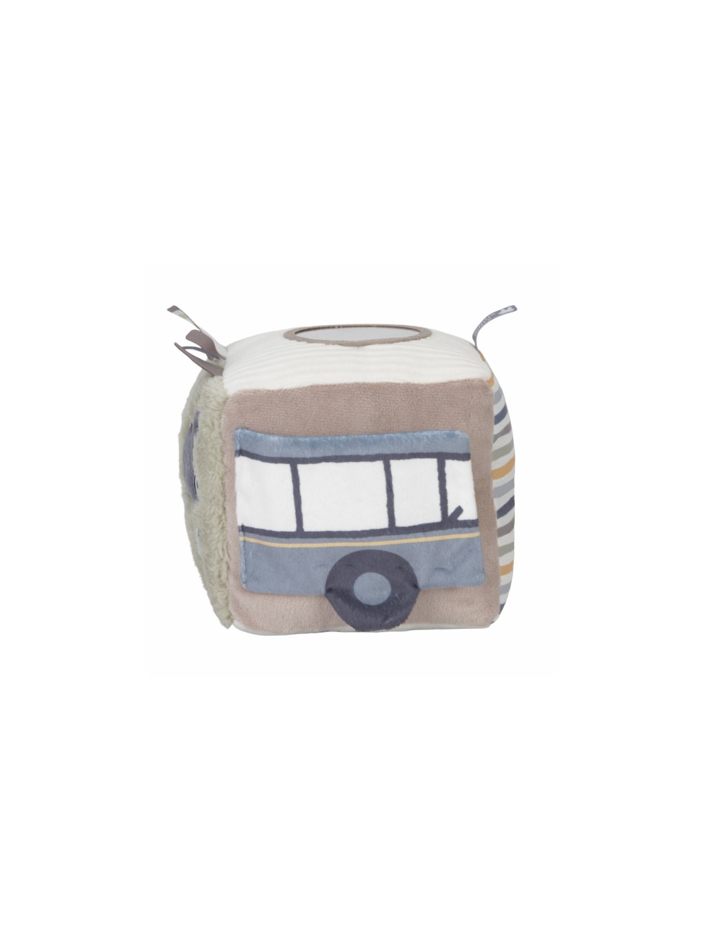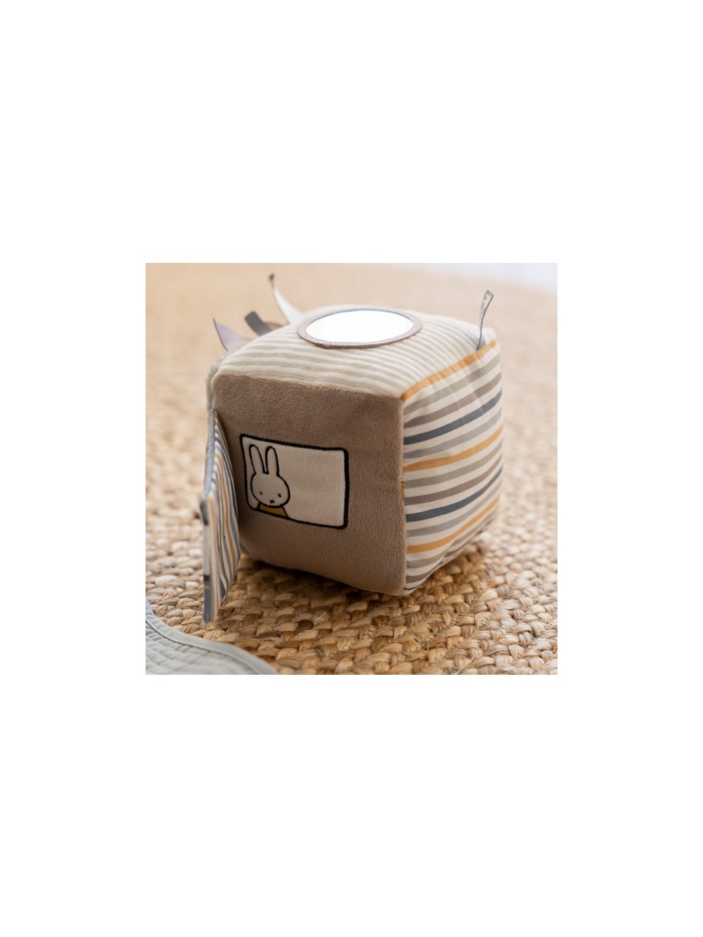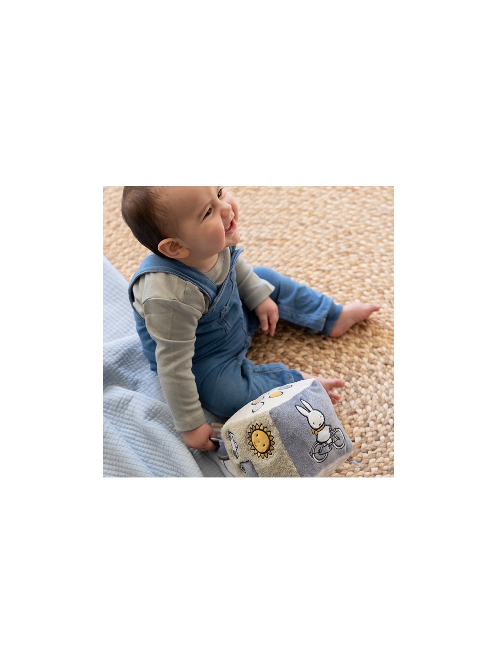 Měkká plyšová kostka je díky svému provedení snadno uchopitelná malými dětskými ručičkami. Různorodé textury a vzory lákají dítě ke zkoumání, kostka navíc při pohybu jemně cinká. Hračka je součástí kolekce hraček Little Dutch Miffy, jejichž ústřední postavou je roztomilá králičí holčička Miffy, známá z knížek pro děti holandského spisovatele Dicka Bruny.