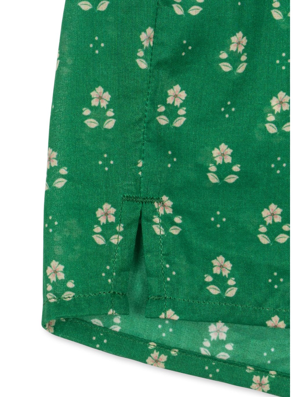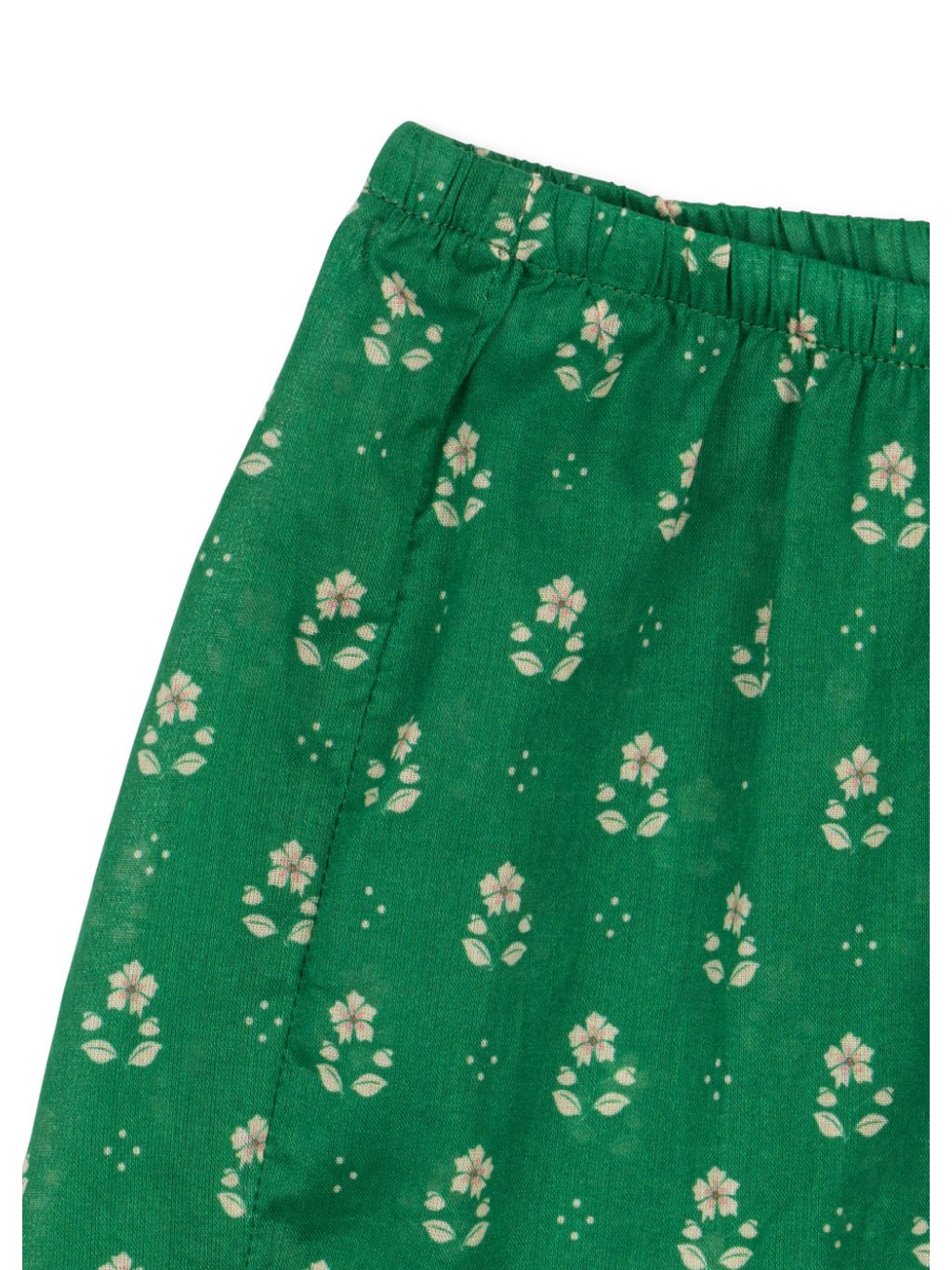 Dívčí bavlněné šortky s motivem květinek.Kraťasy jsou z odlehčeného materiálu. V pase je pružná měkká guma, po stranách ve spodní části jsou rozparky.