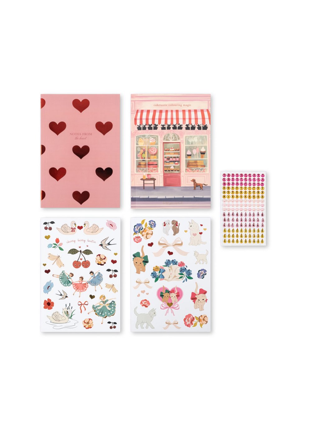 Tato praktická kreativní sada obsahuje: - 12 barevných tužek - 6 fixů - 4 razítka - 2 archy samolepek - 2 archy drahokamů - 1 poznámkový blok - omalovánky A5 - třpytivý tříposchoďový box s motivem třešně.