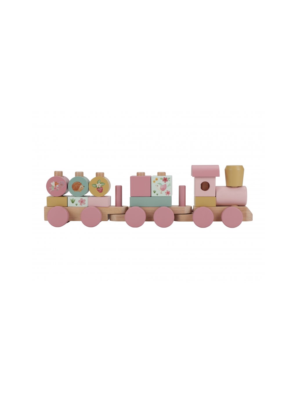 Dřevěný vláček kostky růžový Garden Little Dutch