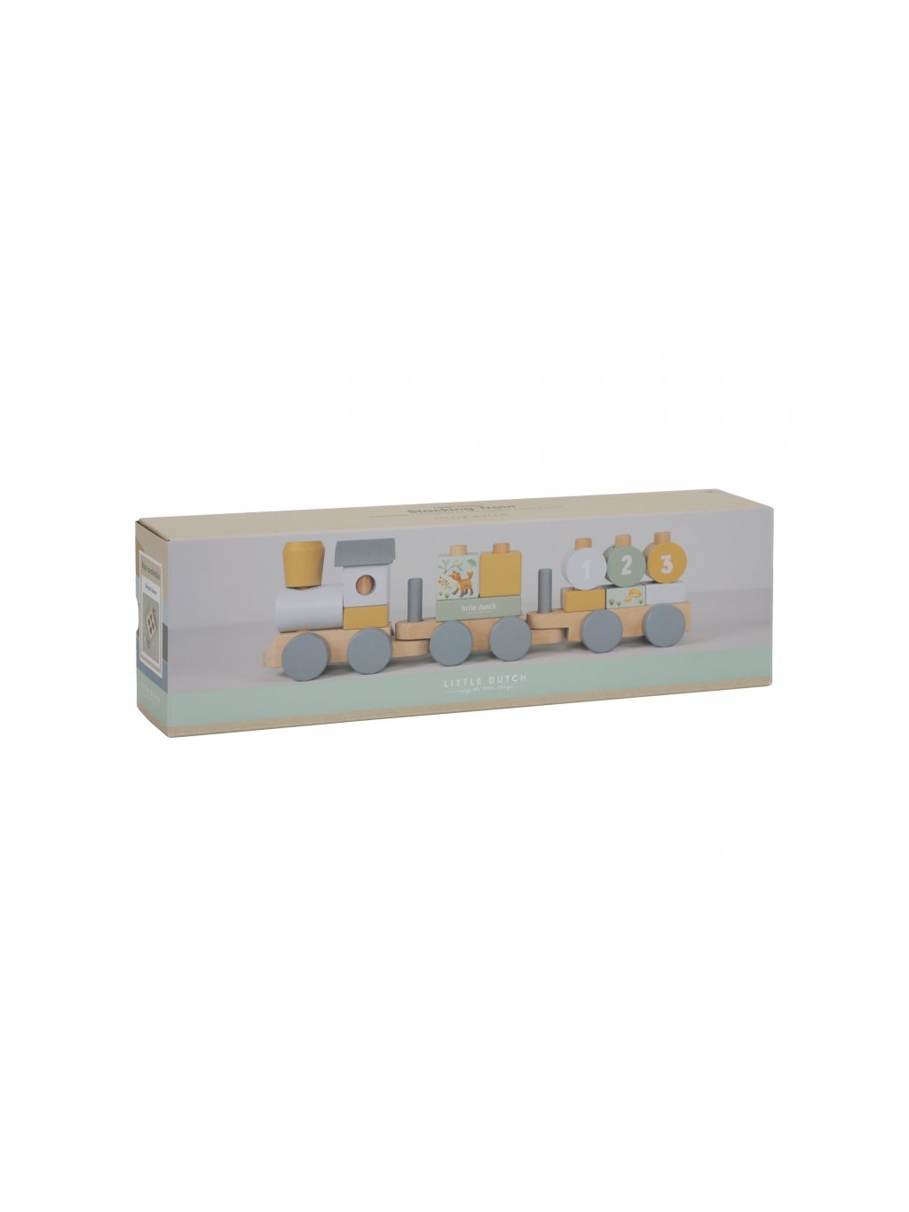 Krásný dřevěný vláček z dílny Little Dutch je potištěn obrázky motivů ze života v lese. S kostkami různých tvarů a barev může vaše dítě sestavovat různé varianty vagónů.