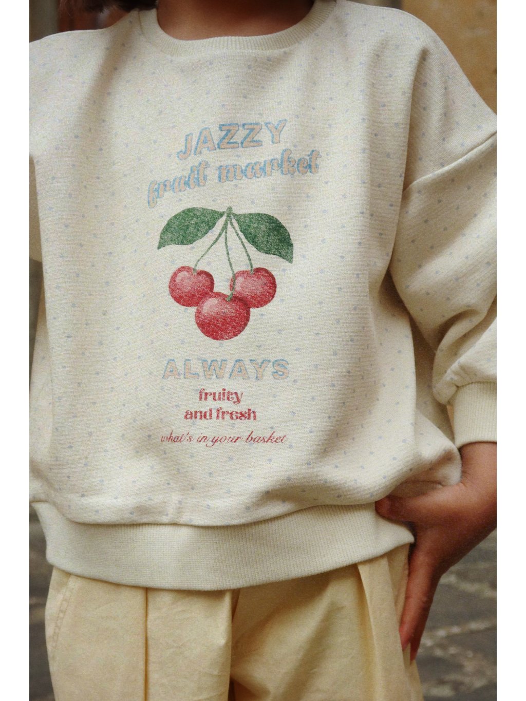 Nádherná dívčí mikina s roztomilým tiskem na přední straně. Mikina má u krku kulatý výstřih, na prsou je vtipný tisk. Na rukávech a v pase jsou manžety.