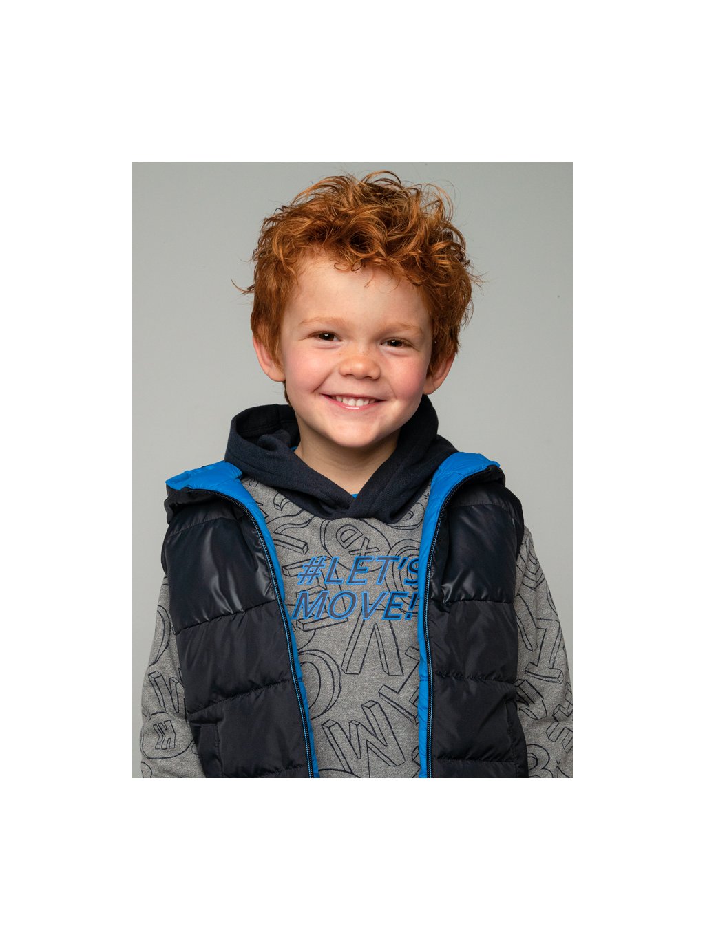 Mayoral chlapecká mikina přes hlavu s kapucí a tiskem. Mikina je z velmi příjemného materiálu. Na přední straně je tisk, stejně tak i kapsy na zip. V pase a na rukávech jsou manžety.