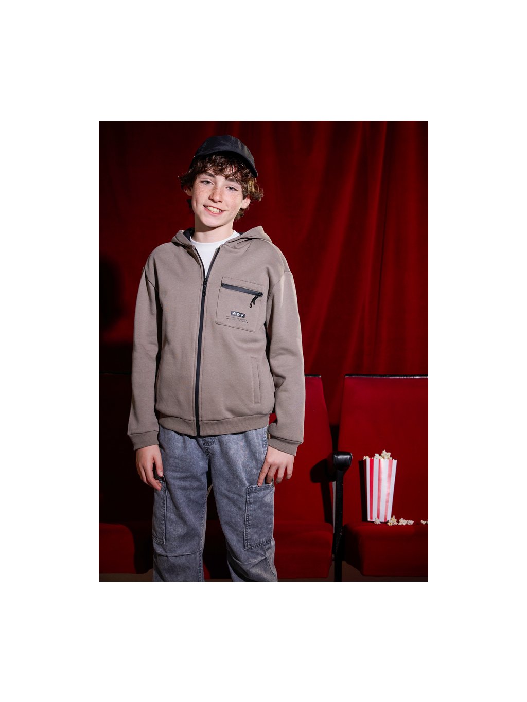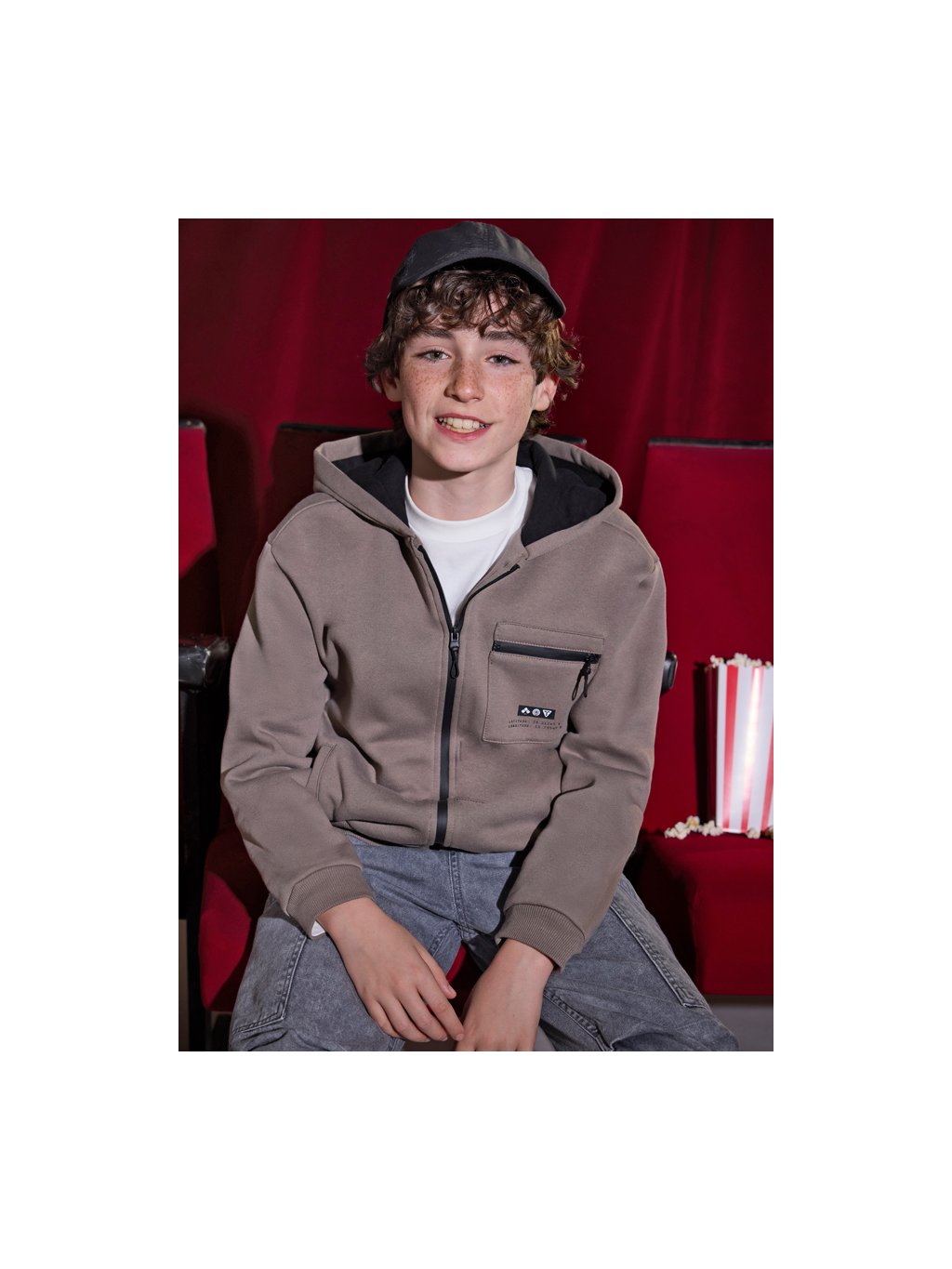 Mikina rozepínací s kapucí a kapsičkou šedá JUNIOR
