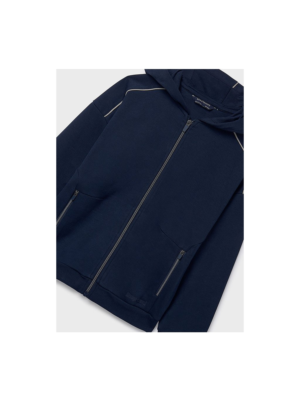 Mayoral chlapecká mikina na zip s kapucí. Mikina je z velmi příjemného bavlněného materiálu. Mikina má na přední straně dvě kapsy na zip. Ve spodní části má mikina decentní výšivku.  Zapínání má na přední straně na zip.