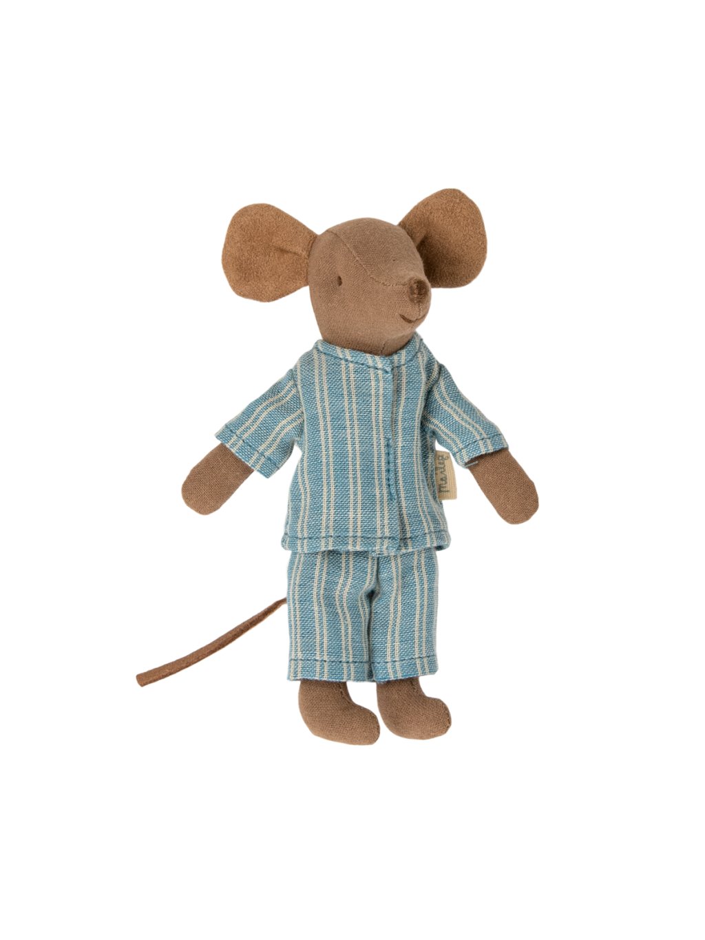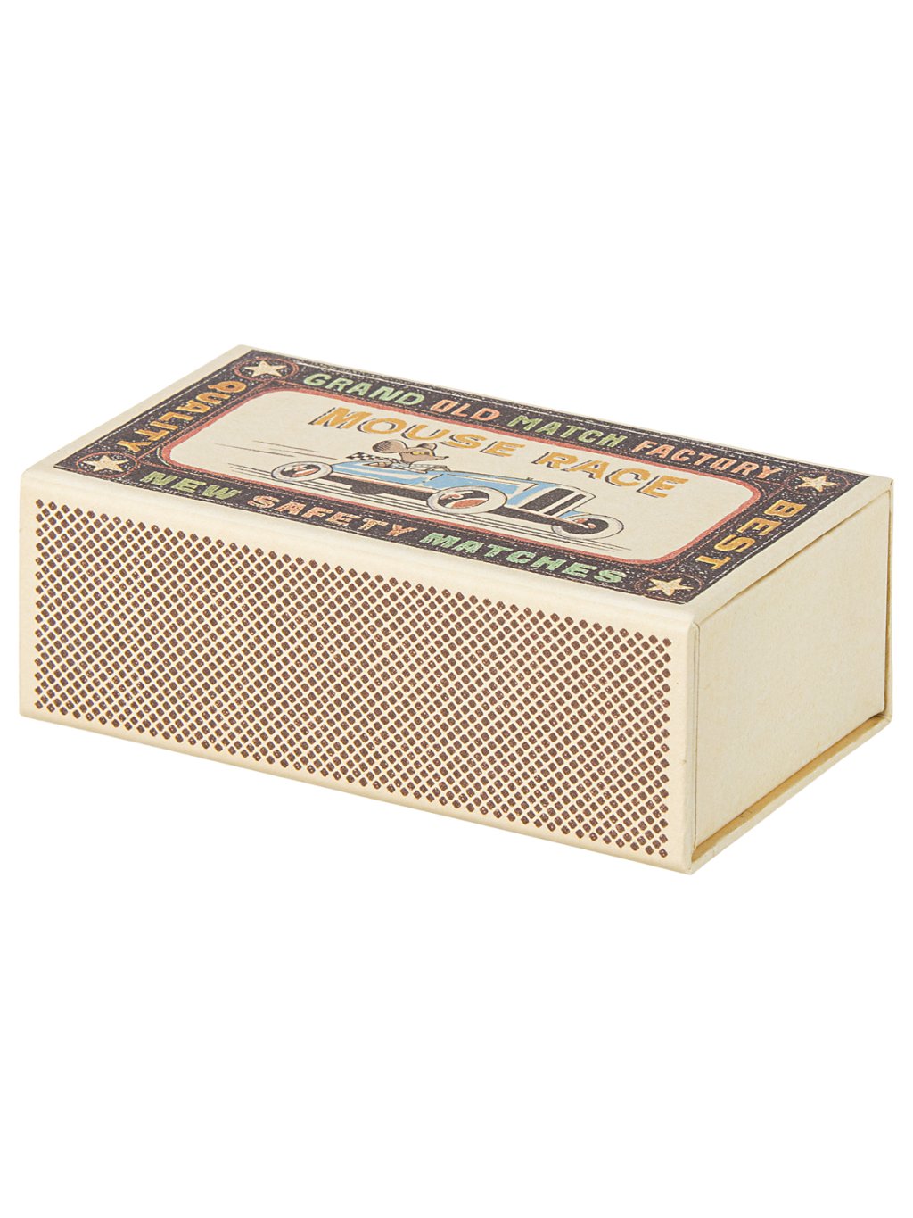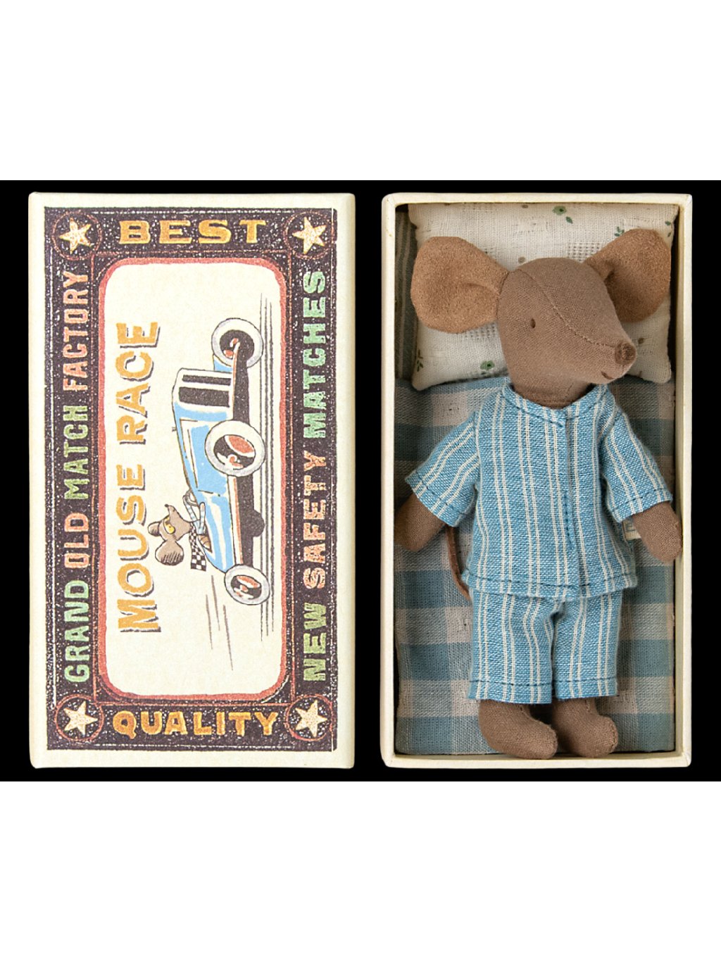Klasický kousek od Mailegu. Tento myšák je připraven na hodiny hraní a krásně se mu spinká v krabičce od zápalek. Oblečení a ložní prádlo mají jedinečný Maileg motiv.
