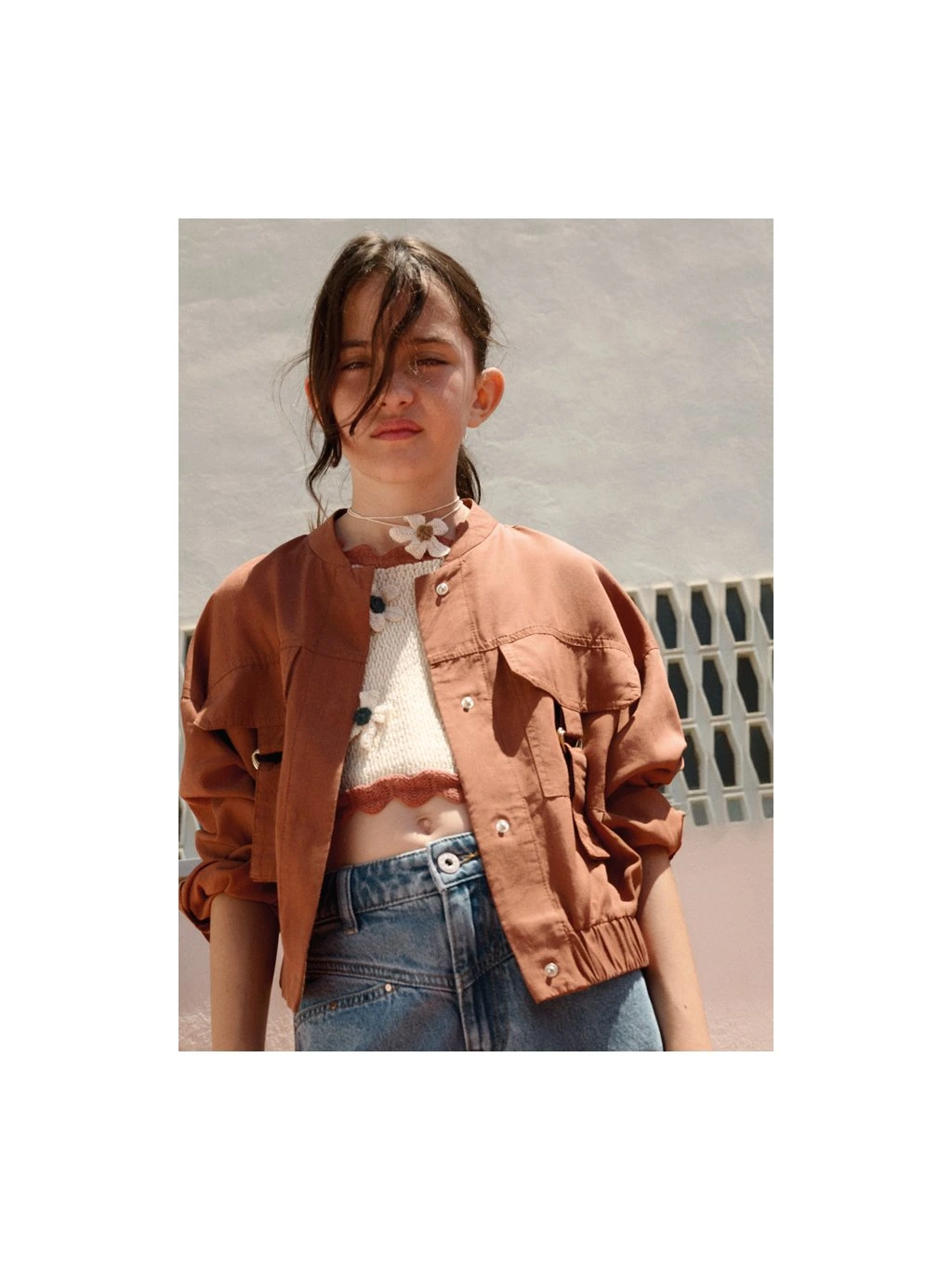 Mayoral dívčí hnědá odlehčená bunda. Bunda je do pasu, zapínání má na patenty. Na přední straně jsou dvě kapsy. Bunda je z lehoučkého materiálu.