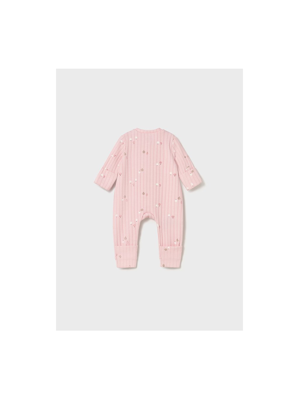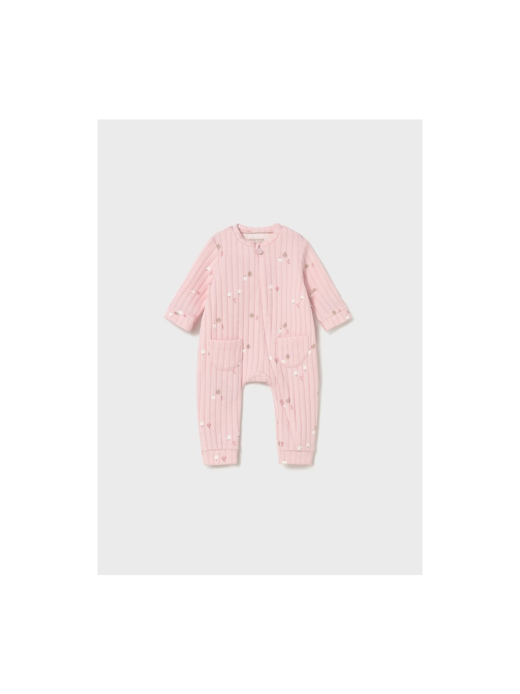 Mayoral kojenecký heboučký overal s decentním motivem. Overal je z velmi příjemného, bavlněného materiálu. Zapínání je na přední straně na zip. Ve spodní části lze konec nohavice ohrnout, nožičky tak budou zakryté. Na přední straně ve spodní části jsou kapsičky.